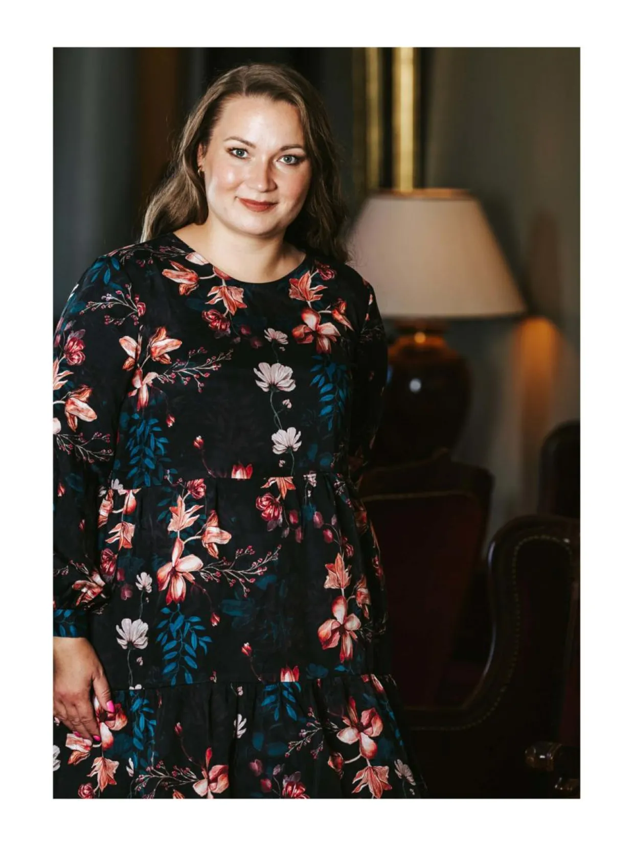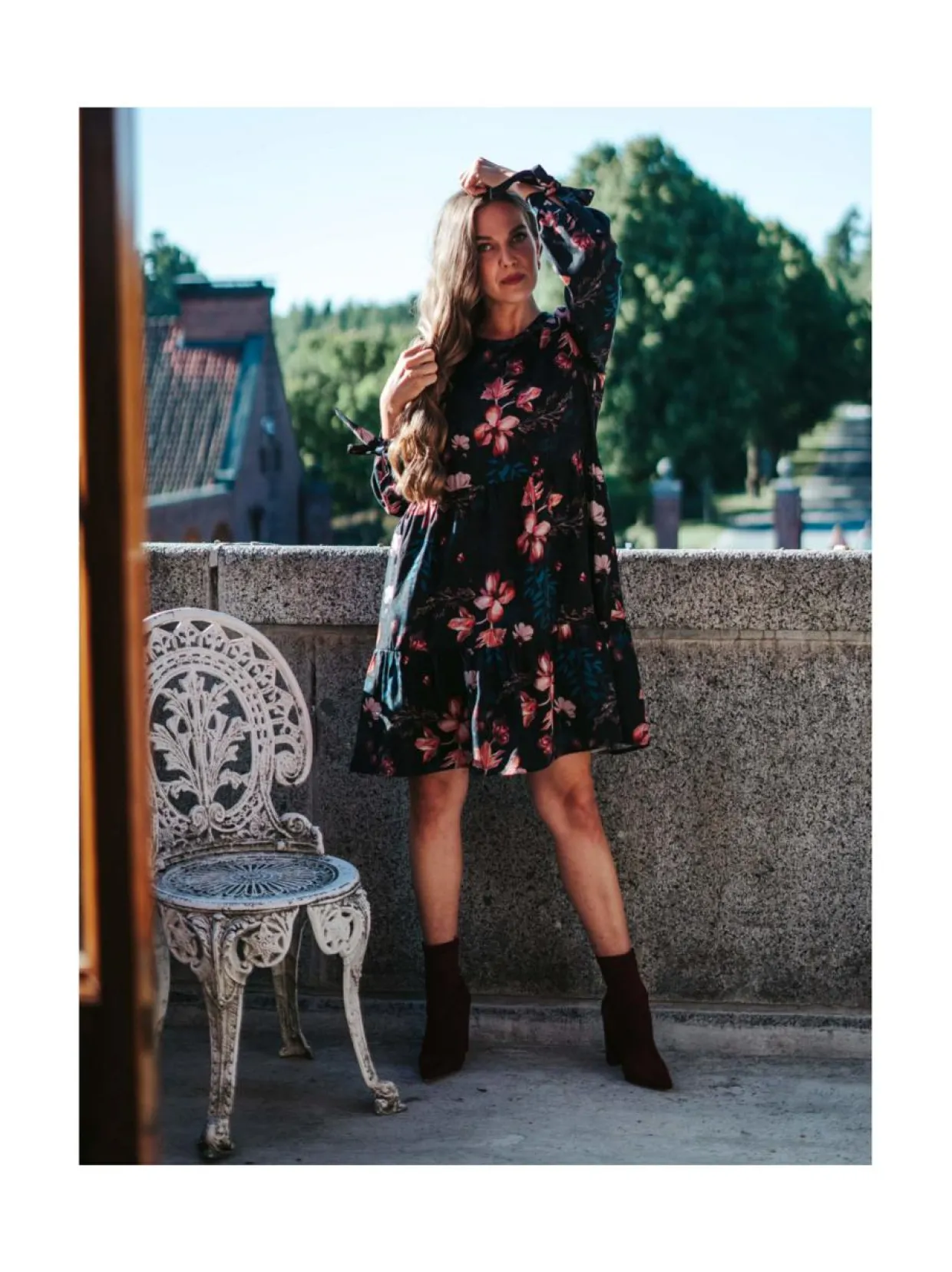 Hailey Dress on polvimittainen kerrosmekko, jonka yksityiskohtana loistavat kauniit rusettihihat. Takana niskassa on halkio sekä pieni nappi, jotka helpottavat pukemista. Fillsens kangas toimii mekossa hyvin laskeutuen kauniisti, luoden siihen hienostuneen vaikutelman.
