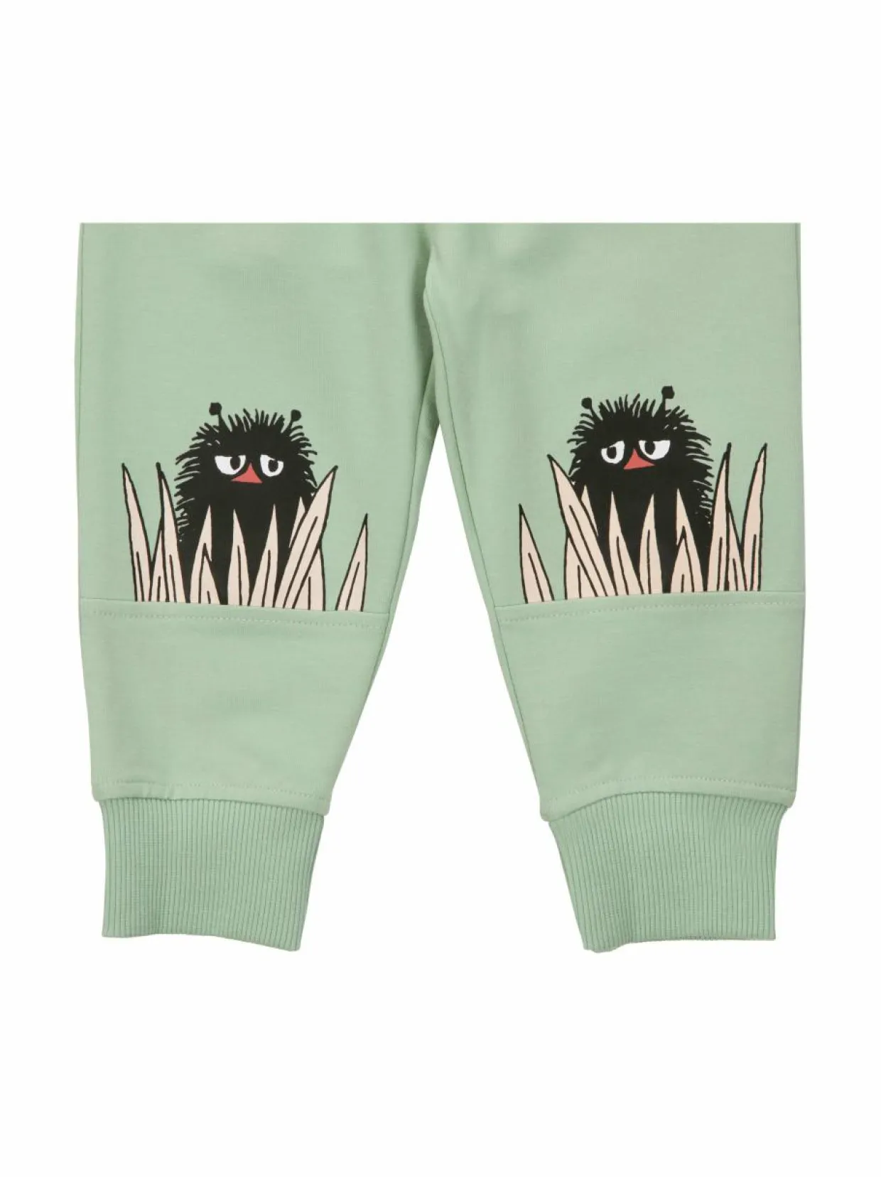 Mukavat collegehousut perheen pienimmille. Muumi Haisuli -housuissa on joustava sekä säädettävä resorivyötärö ja resorilahkeensuut. Materiaalina on käytetty pehmeän tuntuista ja joustavaa puuvilla-polyesteriä.