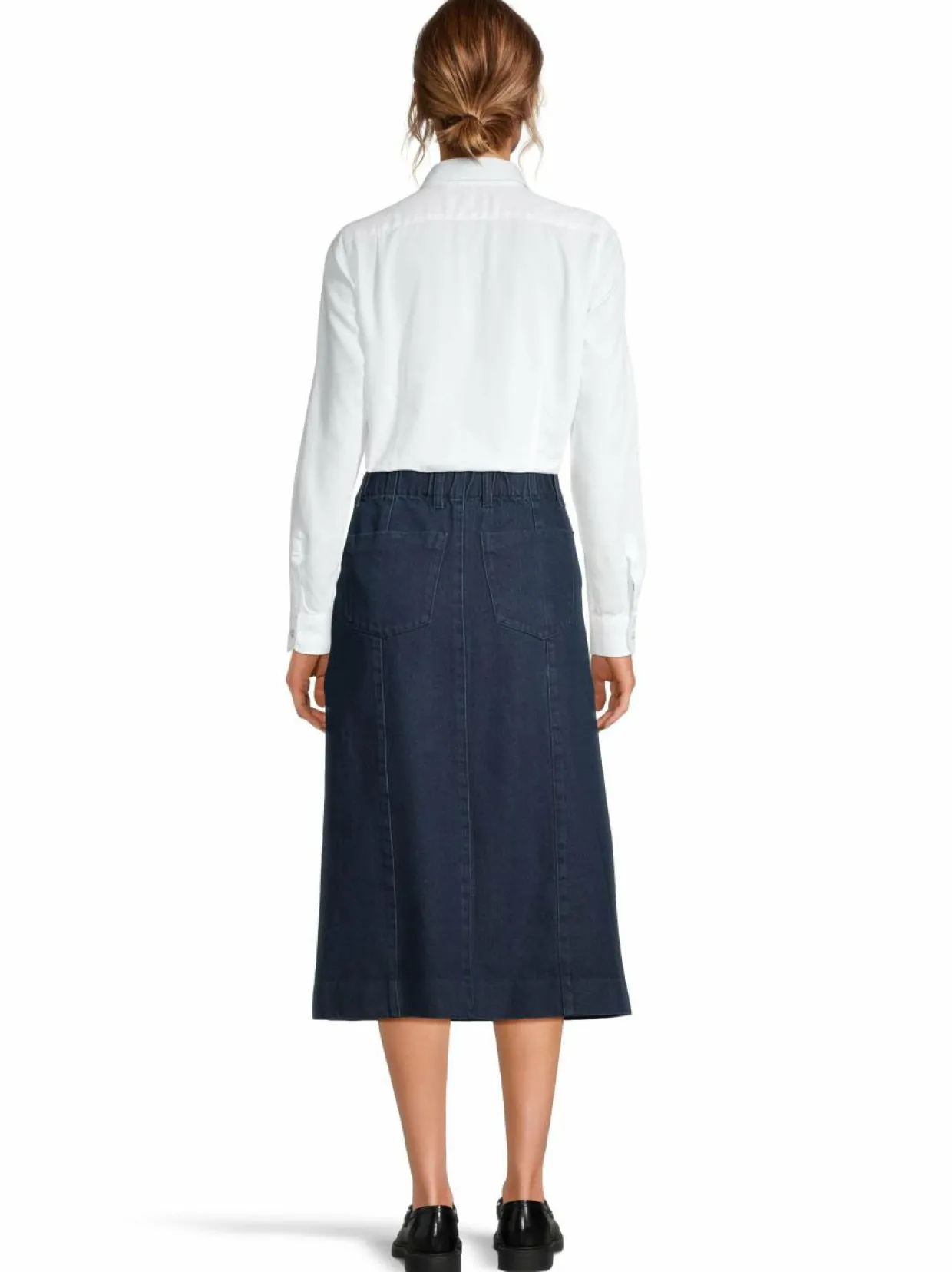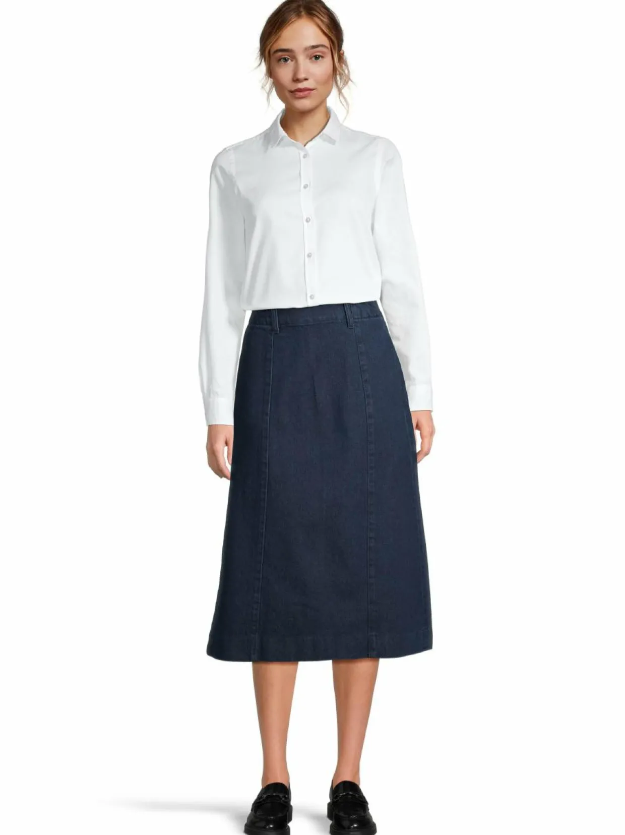 A-linjainen mukava farkkuhame Stockmannin omalta naisten käyttövaatemallistolta NOOM. Hallie-hame on valmistettu miellyttävän tuntuisesta puuvillan ja lyocellin sekoitekankaasta. Hameen vyötärökaitaleelta löytyvät myös vyölenkit. Vyötärön takaosassa on joustoa. Tuote sisältää 30 % kierrätettyä puuvillaa.