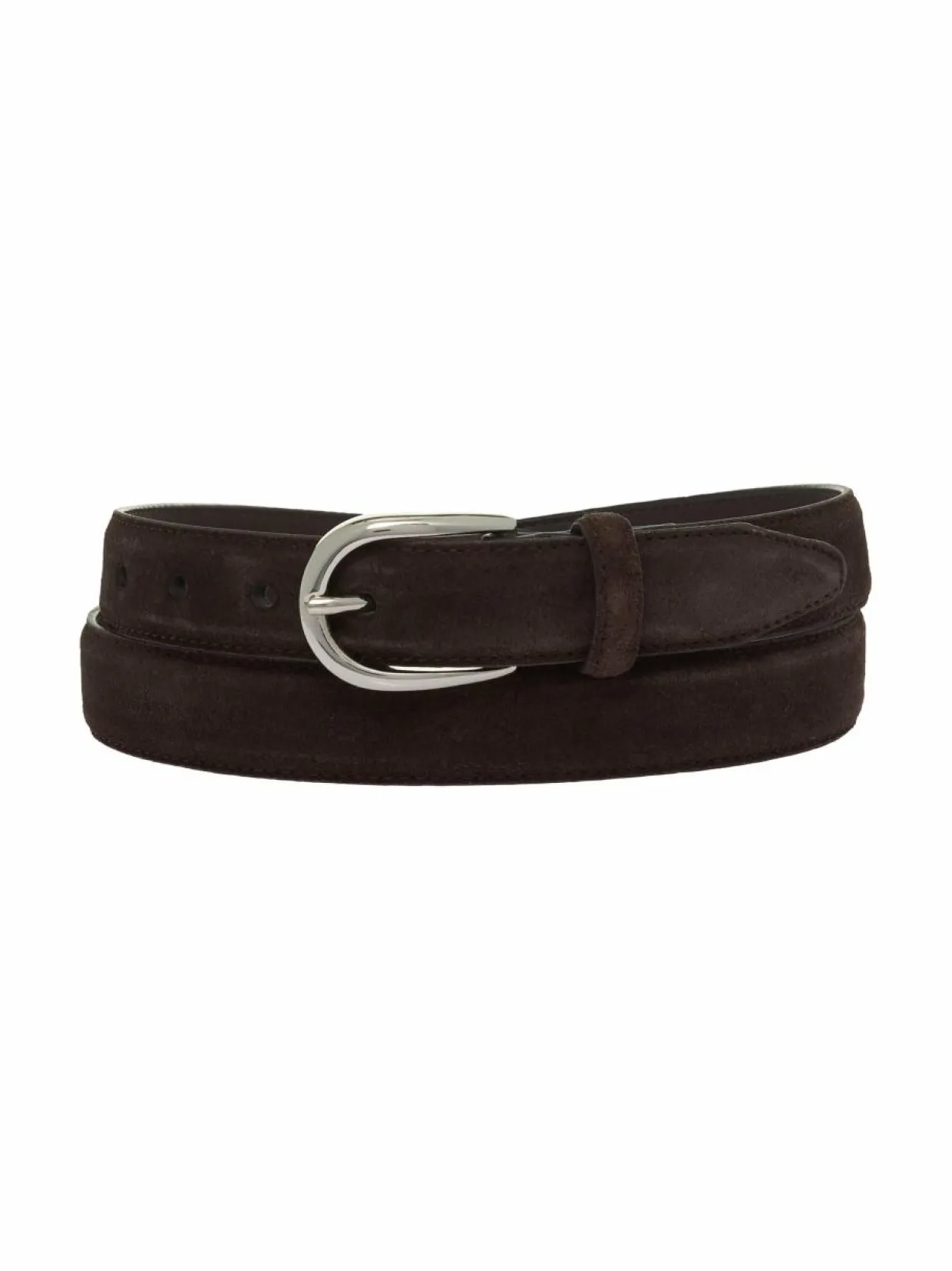 Loake Harry-kapea nahkavyö viimeistelee asukokonaisuuden tyylikkäästi. Klassisessa vyössä on pyöreän muotoinen metallisolki. Materiaali on pehmeää mokkanahkaa.