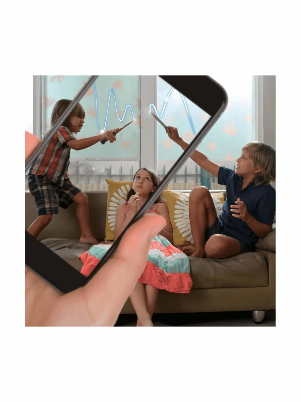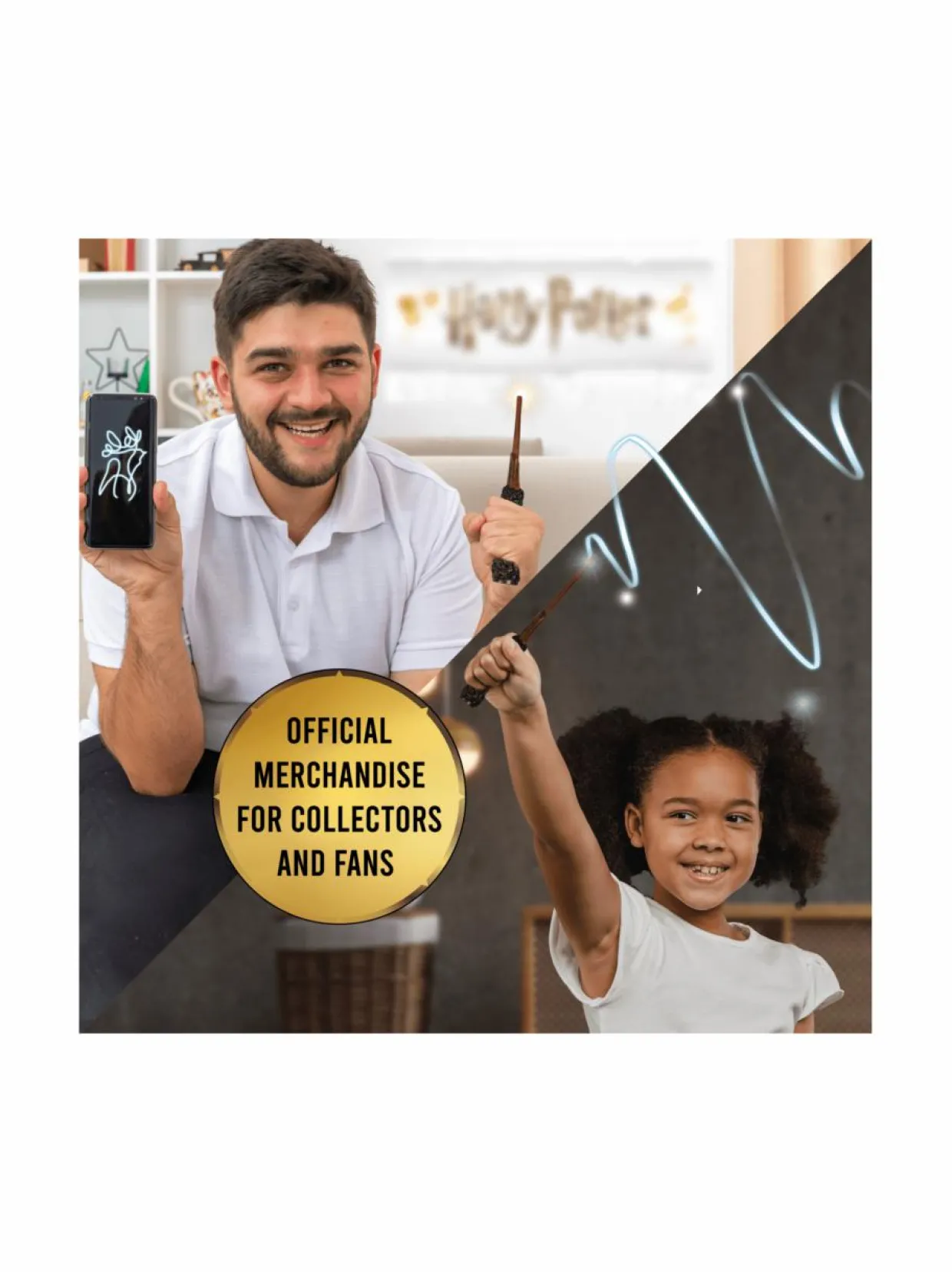 Erittäin laadukas jäljennös Harry Potterin taikasauvasta, jonka kärjessä on kirkas LED-valo, jonka voit sytyttää painamalla kahvaan piilotettua painiketta. Ainoa ero alkuperäiseen taikasauvaan on, että jäljennös on alkuperäistä hieman pienempi. Kun sytytät taikasauvan Lumos-kärjen, todellinen taikuus alkaa! Lataa ilmainen Wow! Stuff -sovellus, niin voit kuvata itseäsi ja muita velhoja ja noitia, kun käytätte taikasauvaa hämärässä. Sovelluksen avulla saat uskomattoman erikoisia kuvia! Kirjoita nimesi ilmaan taikasauvalla, piirrä omia loitsujasi ilmaan, käy hurjia kaksintaisteluja taikasauvoilla tai harjoittele velhomaailman parhaita loitsuja, kuten Expelliarmusta eli aseistariisuntaloitsua, Stupefytä eli tainnutustaikaa ja Expecto Patronumia eli suojeliusloitsua. Tallenna kuvat puhelimeesi tai tablettiisi ja jaa kuvat perheellesi ja ystävillesi, jotka eivät voi uskoa silmiään! Tai esitä Lumos- eli valois-loitsu ja hämmästytä ystäväsi ja perheesi sillä, miten helposti ja maagisesti saat taikasauvaan syttymään valon.