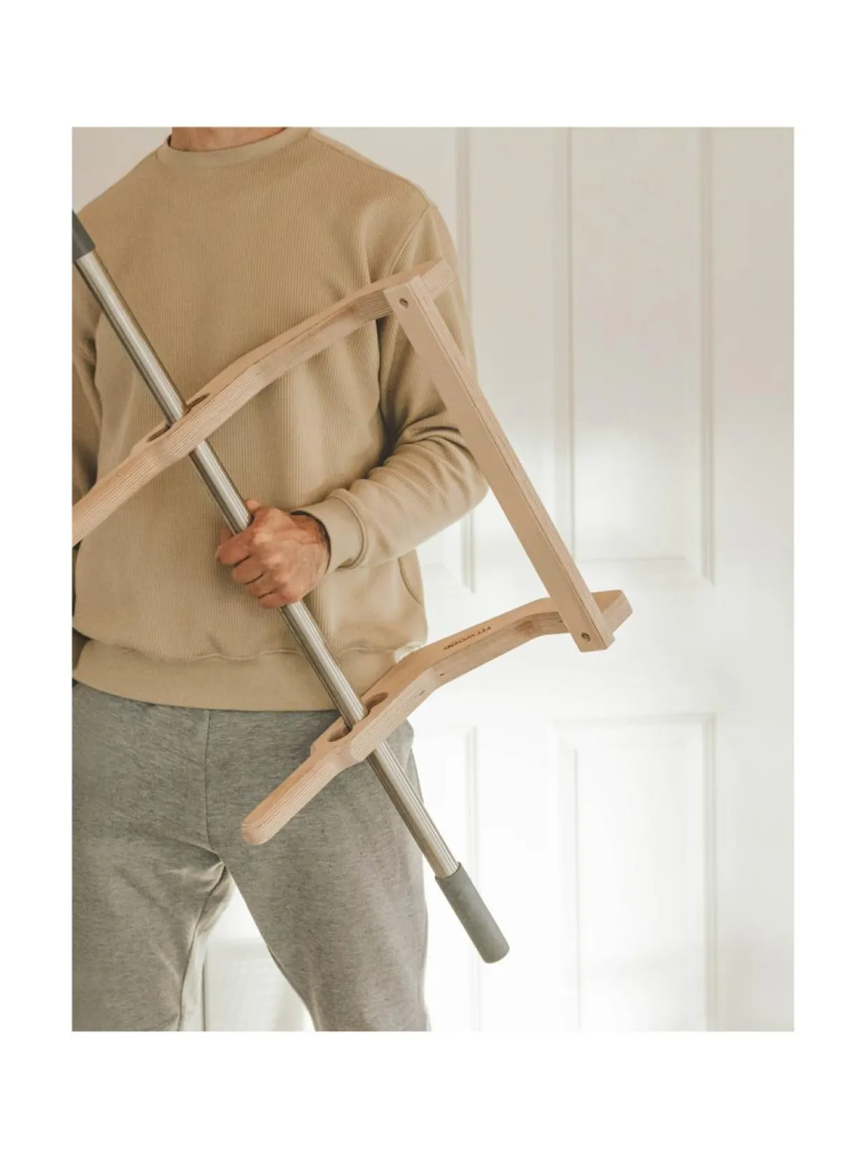 HAVU leuanvetotankoa ei tarvitse pysyvästi asentaa ovenkarmiin, vaan sitä voidaan käyttää milloin tahansa myös lattialla. Leuanvetotanko ei siis vahingoita ovenkarmia, eikä se ole tiellä, kun ovi suljetaan. Ruostumatonta terästä olevan tangon päät on peitetty luonnonkumisilla hihoilla ovenkarmien ja sen viereisten seinien suojaamiseksi.