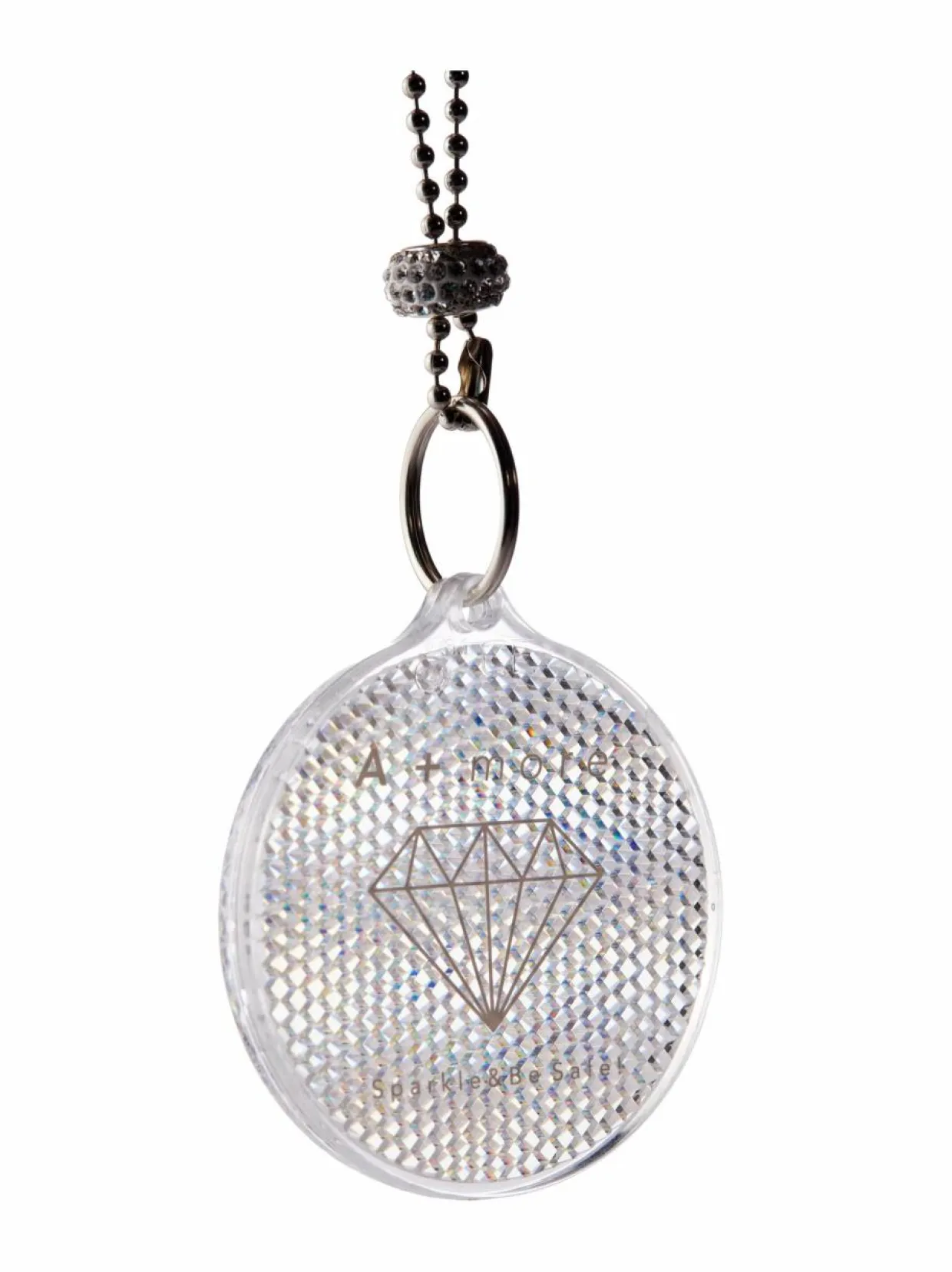 A+moren heijastimen mukana on kolme erilaista kiinnitysvaihtoehtoa sekä pieni kimaltavin koristein somistettu rengas, jonka voi liittää kokonaisuuteen. Tyylikäs heijastin parantaa näkyvyyttäsi ja turvallisuuttasi, ja se on helppo kiinnittää esimerkiksi takkiin, laukkuun tai lastenvaunuihin