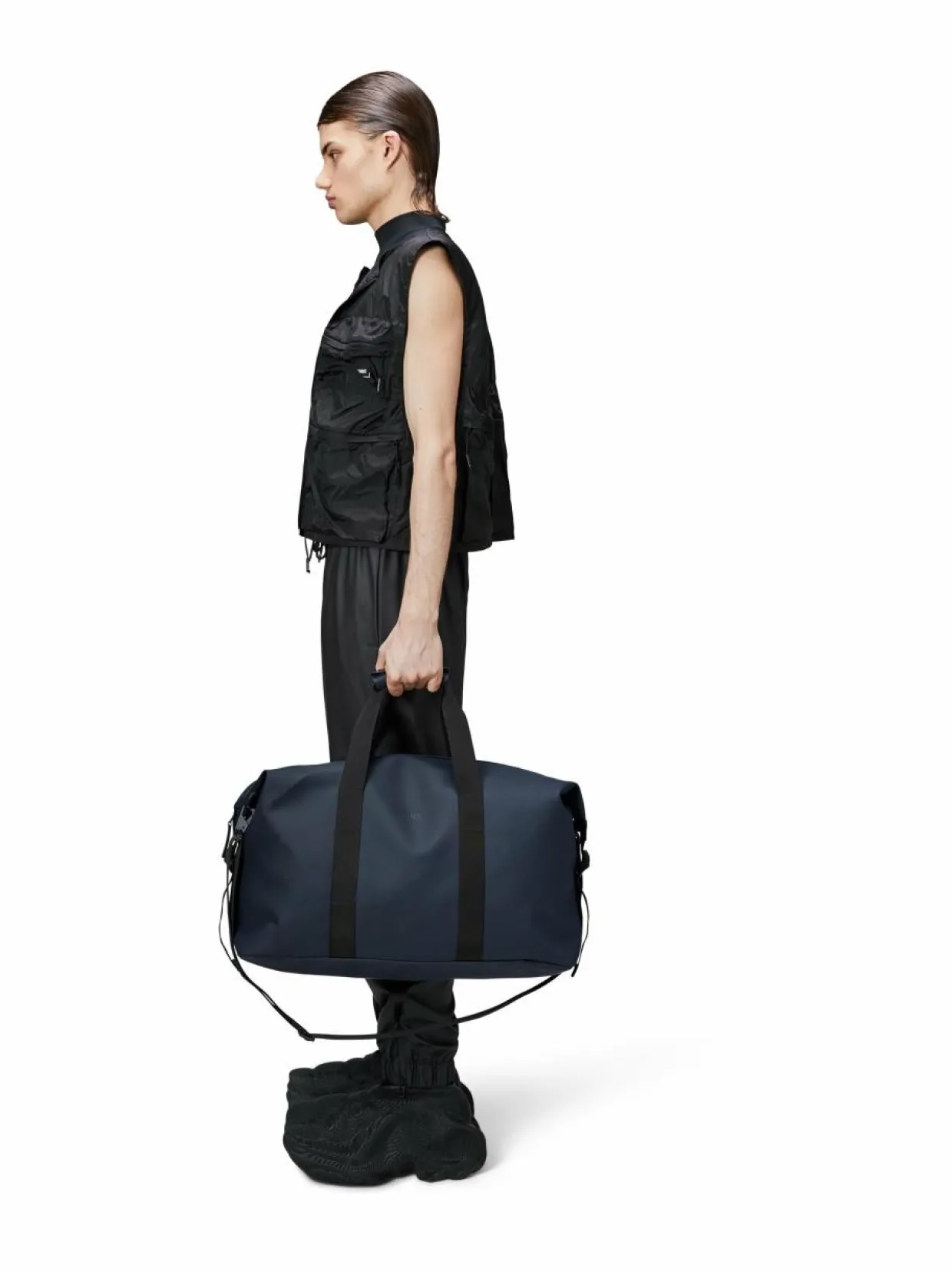 Rainsin viikonloppukassi on selkeälinjainen ja moderni. Kun avaat päällystetyn vetoketjun, löydät tilavan pääosion vaatteille, tekniikalle ja muulle. Laukkua voi kiristää sivuilla sijaitsevien hihnojen avulla. Muotoilu on viimeistelty mukavilla kantokahvoilla ja jousihaoilla varustetulla irrotettavalla olkahihnalla. Hilo-reissulaukku on valmistettu Rainsin vedenpitävästä PU-kankaasta, joka on suunniteltu kantamisen vahvuutta, kestävyyttä ja pehmeää tuntua ajatellen.