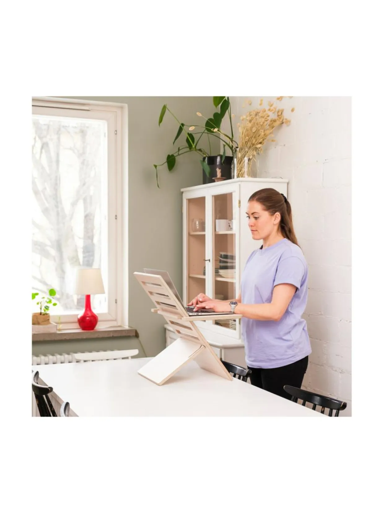 Fiksumpi, ekologisempi ja tehokkaampi tapa työskennellä. Tyylikäs ja ergonominen laptop-teline, valmistettu Suomessa. Säädä korkeutta nopeasti ja helposti; 6 eri korkeutta valittavana! Lifterin jalkalevyssä on innovatiivinen patentoitu Puujousi™, joka tekee tuotteen käyttämisestä turvallista ja mukavaa. Kolmesta osasta koostuva Hima Lifter laptop-teline on helposti kasattava ja siirreltävä. Säädä työskentelykorkeus mieleiseksi nopeasti ja helposti. Yksinkertaisen rakenteen ansiosta tuotteen käyttö on mukavaa sekä tehokasta ja se muuttaa minkä tahansa kiinteän pöydän seisomatasoksi hetkessä! Kantokyky 20kg. Suomalaista kestävää koivuvaneria, saarnilaminaatti.