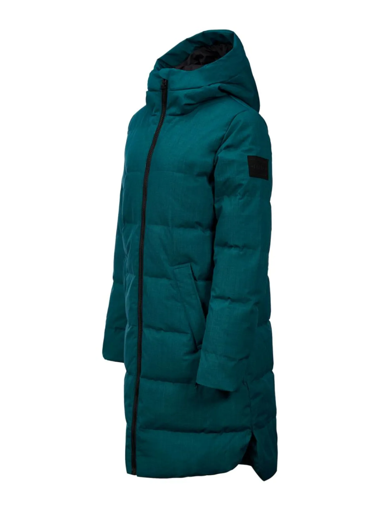 Ivalo Hiutale – Naisten lämmin ja säänpitävä pitkä untuvatakki talven vapaa-aikaan ja ulkoiluun. Hihansuissa on sisäpuolella resori, joka estää lämpöä karkaamasta. Istuvuutta voi säätää nyörillä vyötäröllä ja hupun reunassa. Vetoketjulliset taskut, joissa on miellyttävä ja pehmeä sisävuori. Rintatasku vuorin puolella. Päällikankaassa on ympäristöystävällinen PFC-vapaa vedenhylkivyyskäsittely. Käytetty untuva on eettisesti tuotettua RDS-sertifioitua untuvaa.