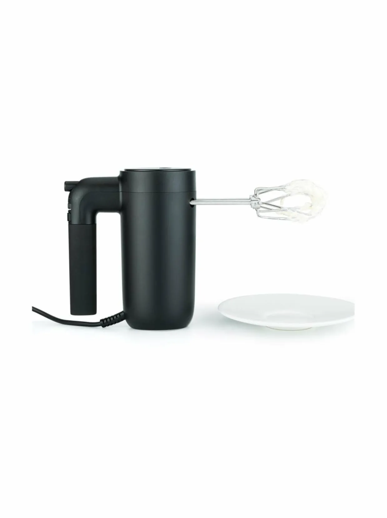 Sulavasti muotoiltu mattapintainen sähkövatkain. 500 W moottori ja useat nopeusasetukset. Mukana vatkaimet ja koukut.