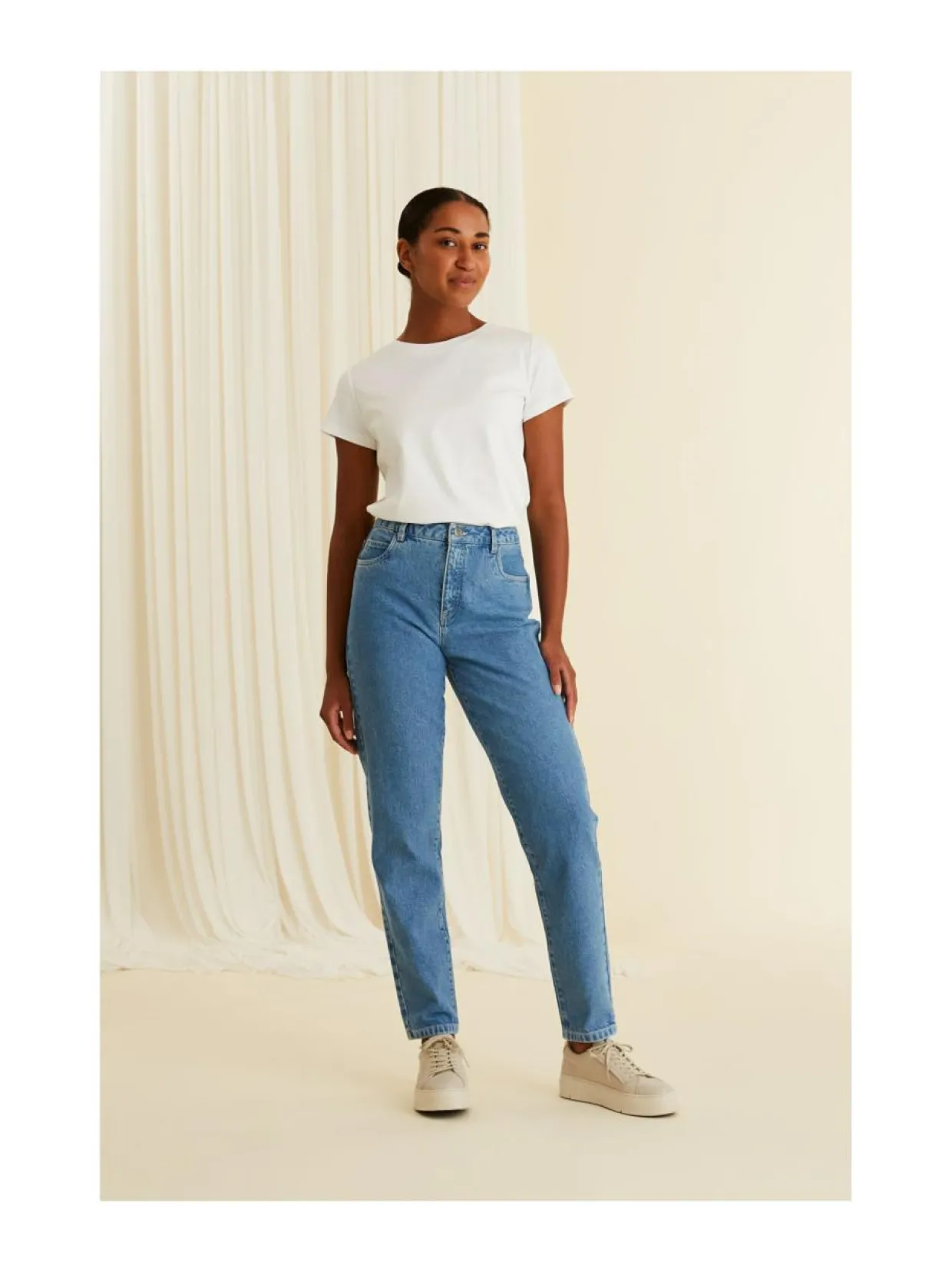Materiaali100 % puuvilla Hoito-ohjeethienopesu 30 °C VäriSININEN DENIM Avainsanatcasual, kapeat, mom jeans, korkea vyötärö