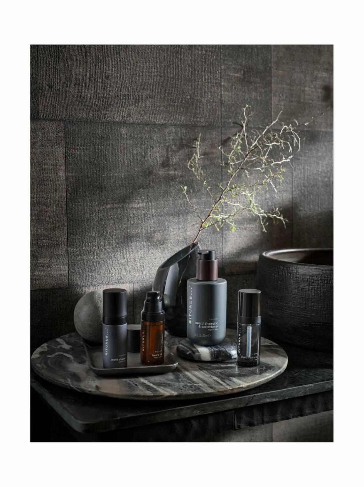 Pidä partasi puhtaana, pehmeänä ja hoidettuna erityisellä shampoolla ja hoitoaineella, jotka eivät poista kasvojesi ja partasi luonnollisia öljyjä. Lisätty basilikaöljy, jolla on antioksidanttisia, supistavia ja kosteuttavia ominaisuuksia, auttaa pitämään parran alla olevan ihon kosteutettuna. Hyvin E-vitamiinipitoinen arganöljy puolestaan virkistää, pehmentää ja kosteuttaa partakarvoja.