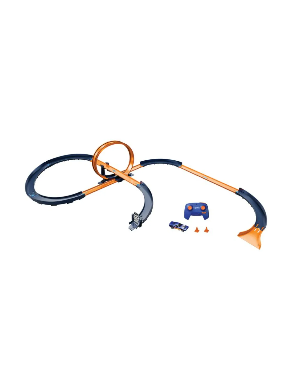 Hot Wheels RC Speed ratasetti sisältää yli 30 rataosaa ja Hot Wheels -kaukosäädinauton äärimmäisiin kilpailuihin ja stuntteihin. Suunnittele oma eeppinen kilparatasi ja testaa sitä mukana tulevalla 1:64 mittakaavassa olevalla RC-ajoneuvolla.