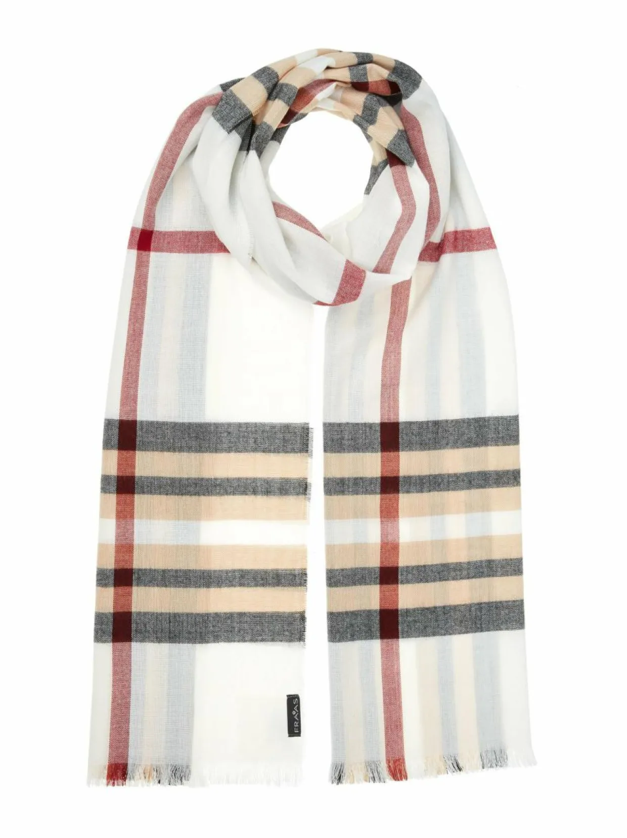 Fraasin pehmeää ja keveää huivia koristavat tyylikkäät ruudut. Huivi on erinomainen asuste piristämään asukokonaisuutta ja lämmittämään viileällä säällä.