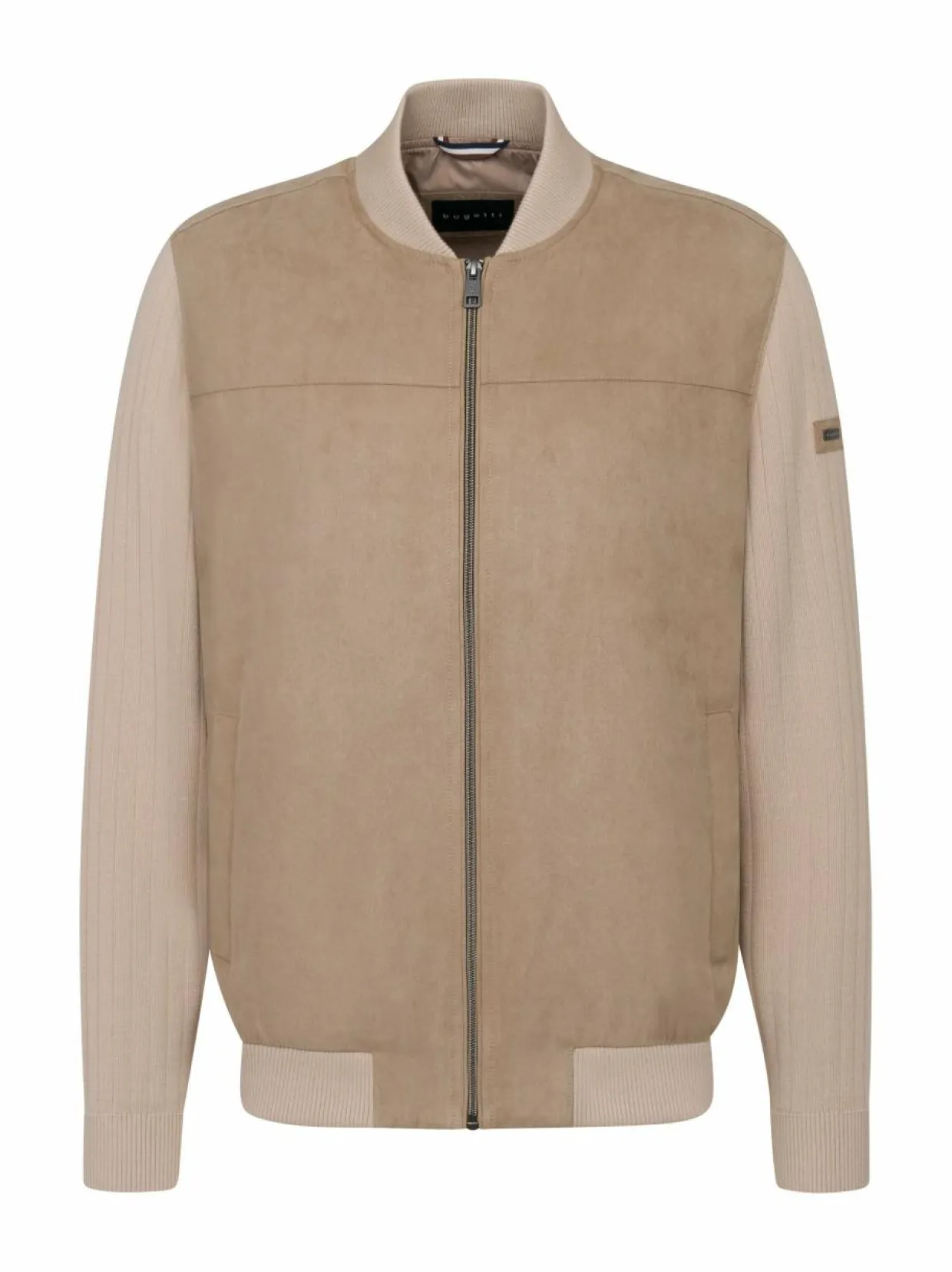Bugattin hybriditakki yhdistää pehmeän neuloksen ja huolitellun tekonahkapintaisen kankaan. Takissa on klassinen bomber-tyylinen leikkaus, joka tarjoaa ajattoman ilmeen arkeen ja vapaa-aikaan. Vetoketjukiinnitys ja resorireunukset tuovat takkiin käytännöllisyyttä ja varmistavat täydellisen istuvuuden. Sivuilla käytännölliset taskut.