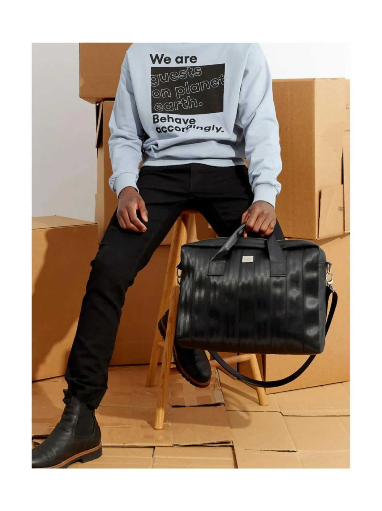 HYÖKY on ylijäämäturvavyöstä ja ylijäämänahasta valmistettu kestävä ja tyylikäs tietokonelaukku. Tämä näyttävä läppärilaukku herättää varmasti huomiota työpaikalla tai asiakastapaamisissa. Sen kiiltävä turvavyöpinta ja ajaton design tekevät laukusta ylellisen. Laukun sisällä on vettä ja likaa hylkivä pinta, avoin pikkutasku, pehmustettu isompi tasku, sekä avainlenkki. Voit käyttää laukkua läppärilaukkuna, tai salkkuna kansiolle tai tärkeille papereille.