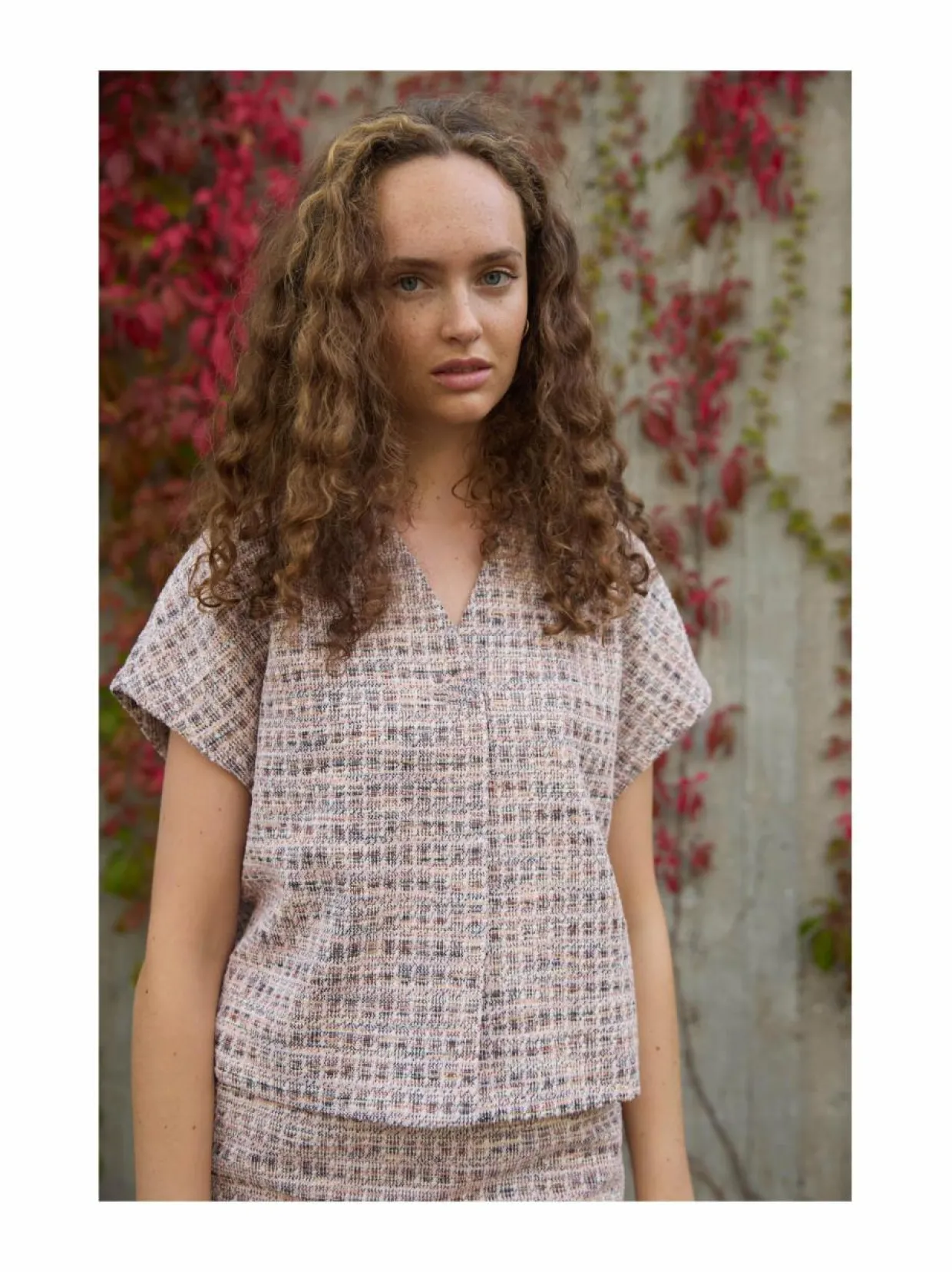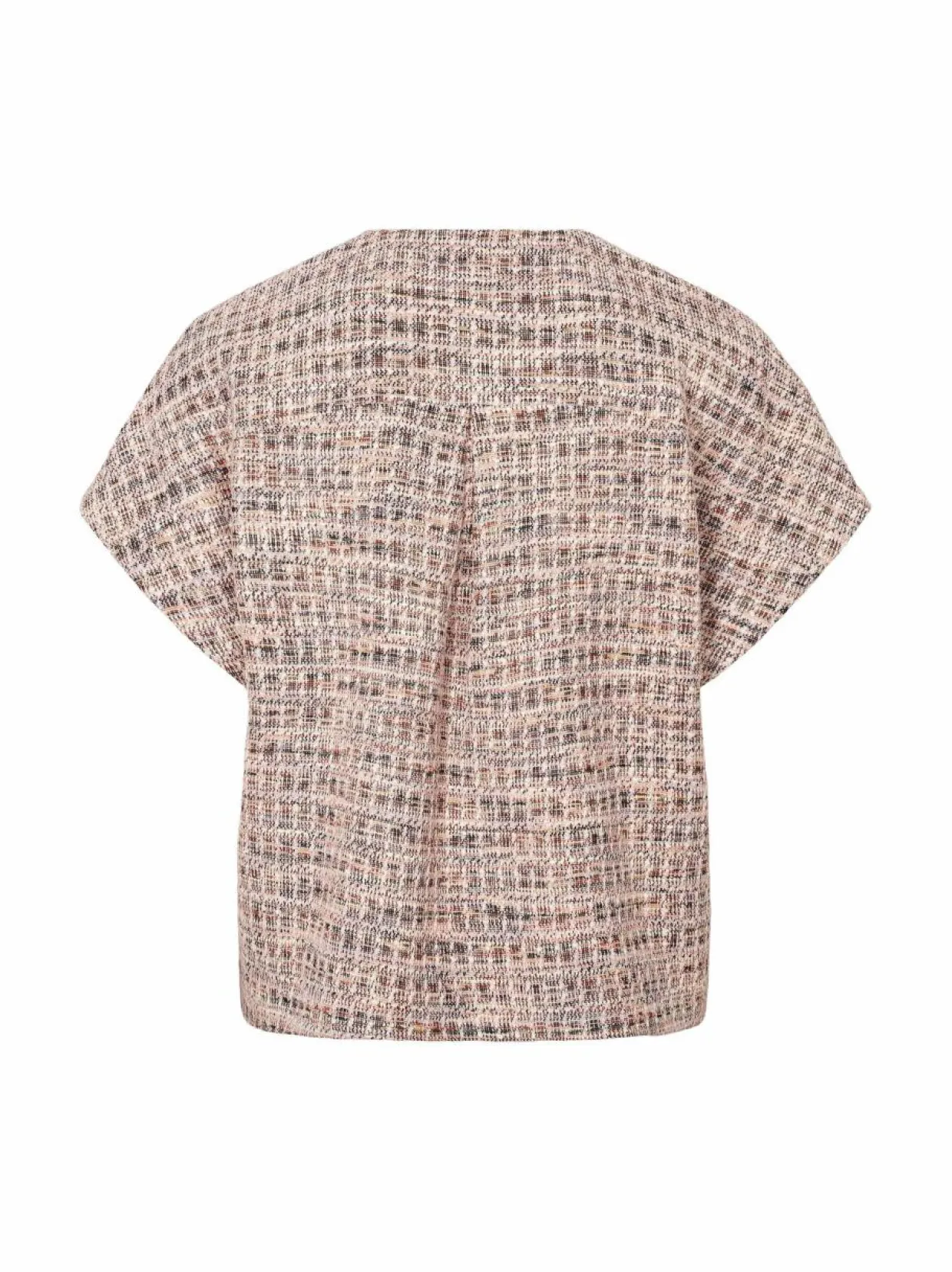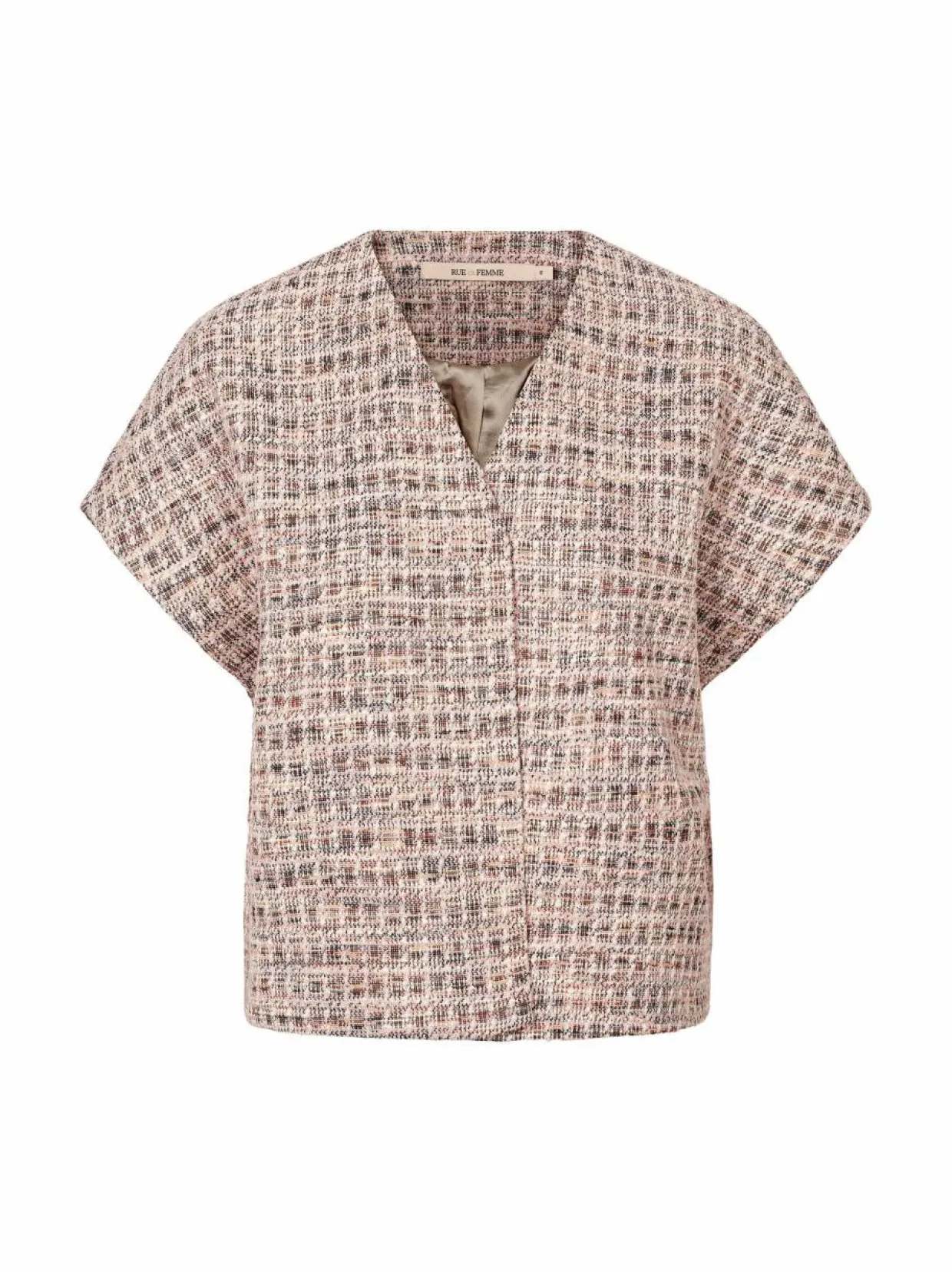 RUE de FEMMEn lyhythihainen Ingela-jakku on moderni ja käytännöllinen lisäys vaatekaappiisi. Se on valmistettu pehmeästä ja hengittävästä materiaaliyhdistelmästä, joka tuntuu miellyttävältä iholla ja on joustavaa laatua. Tässä bukleepintaisessa jakussa on normaali istuvuus ja se sopii erinomaisesti täydentämään sekä arkista että juhlavampaa asukokonaisuutta.