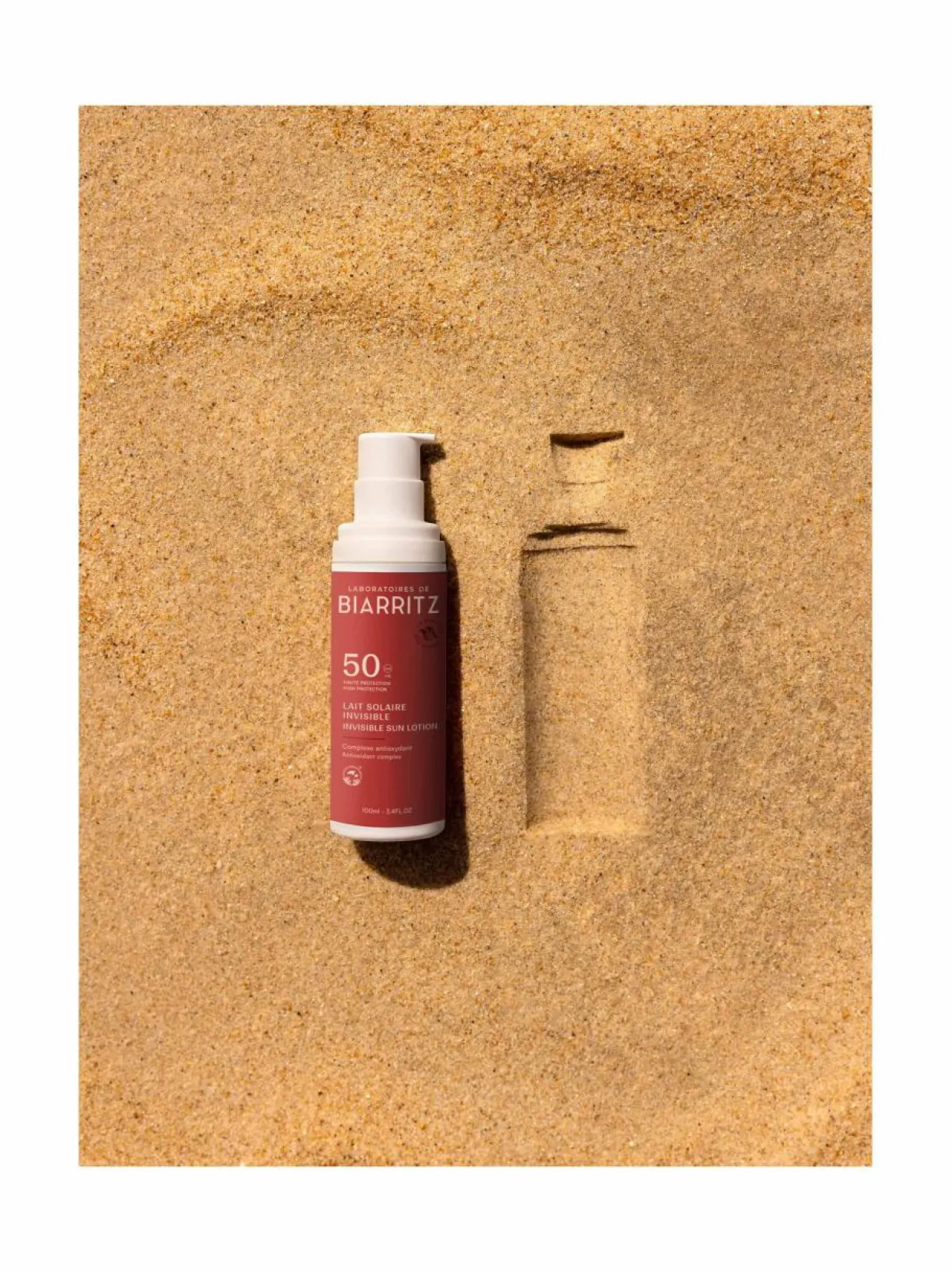 Laboratoires de Biarritz SPF50 Invisible Sun Milk aurinkovoide tarjoaa erittäin korkean suojan UVA- ja UVB-säteitä vastaan ja samalla kosteuttaa ihoa. Luomu aloe veralla rikastettu nestemäinen koostumus on helposti levittyvä ja jättää iholle raikkaan tunteen. Meren voiman inspiroima SPF50 Invisible Sun Milk yhdistää kaksi tehokasta ainesosakompleksia, jotka tarjoavat UVA/UVB-suojan ja auttavat säilyttämään ihosi nuorekkaan elinvoimaisuuden. Käyttö: Levitä runsaasti iholle ennen auringossa oleskelua.