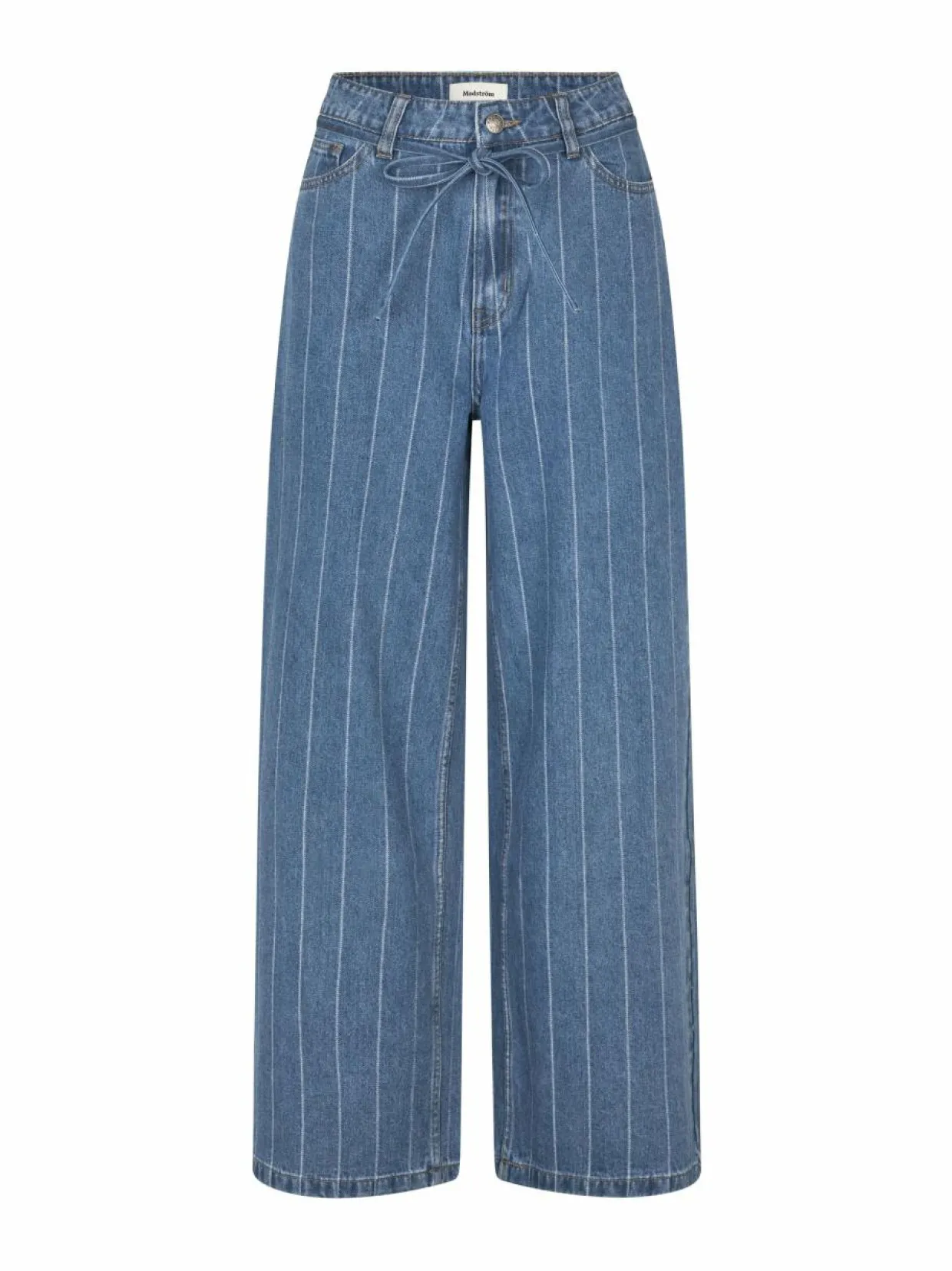 Mukavat raitafarkut Modström-merkiltä. Housujen suora malli ja klassinen pystyraitakuvio luovat ajattoman ilmeen. Valmistettu pehmeästä denimkankaasta, joka tuntuu miellyttävältä iholla. Tämä farkkumalli on monipuolinen ja helposti yhdisteltävä eri yläosien kanssa.