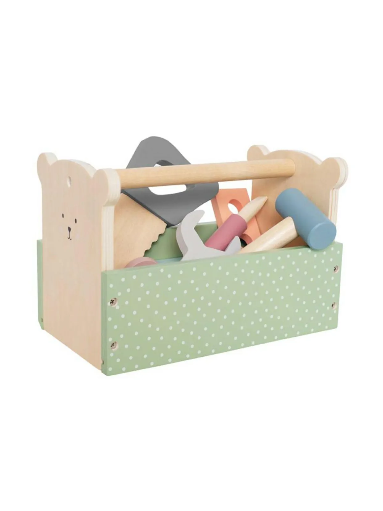 Tuotenumero1543127 Ikäsuositus3+ Avainsanatjabadabado työkalupakki nalle, lasten työkalupakki, puinen työkalupakki, leikkityökalut lapsille, karhu kuvioitu työkalupakki, lasten lelut työkalut, lelupakki lapsille