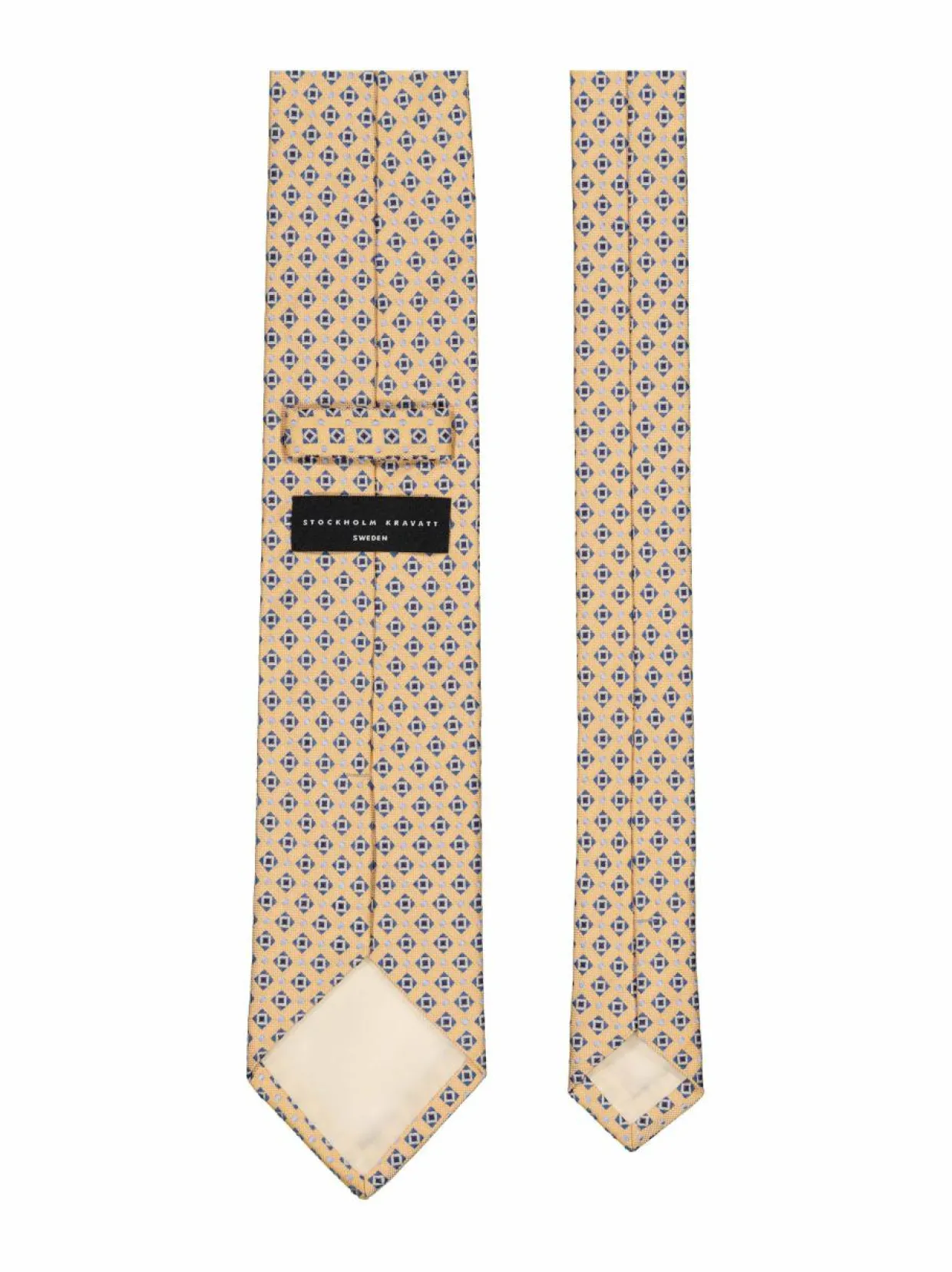 Stockholm Kravatt -merkin ylellinen solmio on valmistettu silkistä, joka antaa sille pehmeän tuntuman ja upean kiillon. Materiaalin luonnollinen joustavuus myös helpottaa solmion sitomista ja säätämistä, jotta voit olla varma tyylikkäästä ja huolitellusta ulkonäöstä koko päivän ajan. Hienostunut kuviointi toimii hyvin erilaisten pukujen ja kauluspaitojen kanssa.