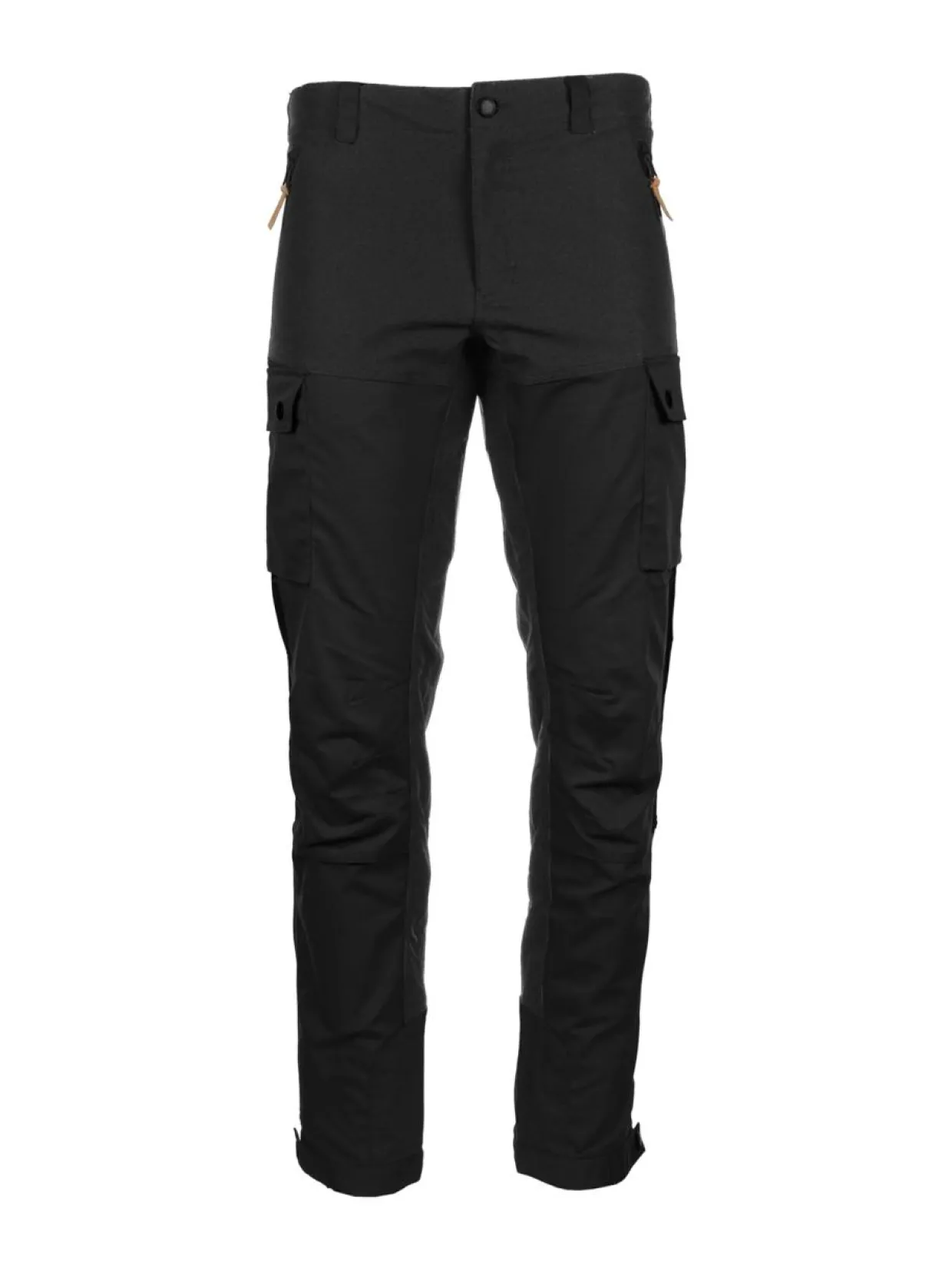Ivalo Jänkä – Miesten ulkoiluhousut hengittävät mukavasti ja ovat valmistettu kosteussuojatusta puuvillapolyesteristä. Stretch-paneelit parantavat liikevapautta tehden housuista mukavat käytettävät haastavissakin maastoissa. Neljä vetoketjullista taskua sekä säädettävät lahkeensuut, jotka kiristyvät erinomaisesti pitkävartisemmankin vaelluskengän päälle.