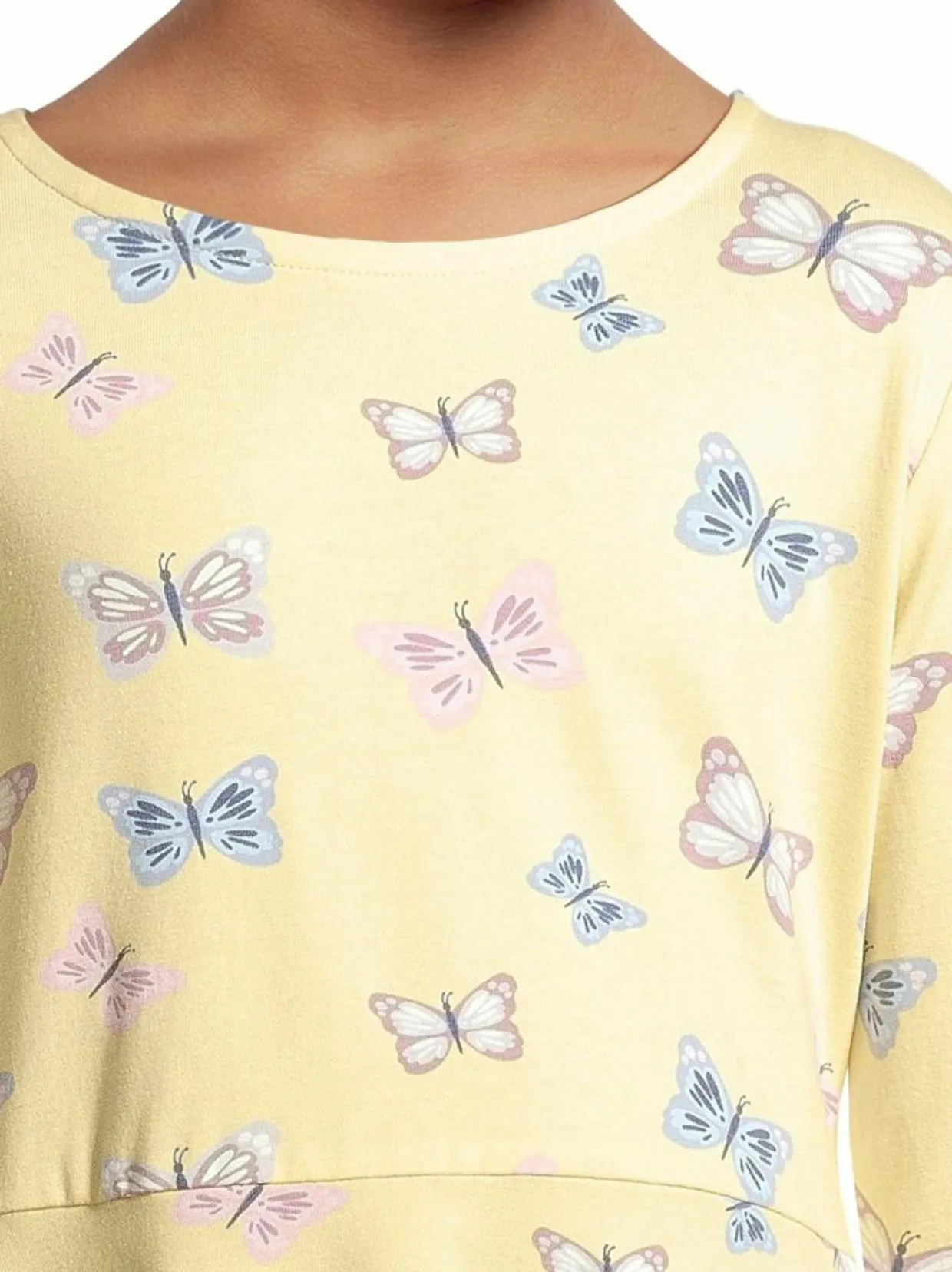 Joustava materiaali on 95 % luomupuuvillaa ja 5 % elastaania.Materiaali95 % puuvilla, 5 % elastaani PesuohjeetKonepesu Pesulämpötila40 °C ValmistusmaaBangladesh VäriSUNRISE YELLOW AOP AvainsanatBOGI, perhosmekko, mansikkamekko, mekko, lasten mekko