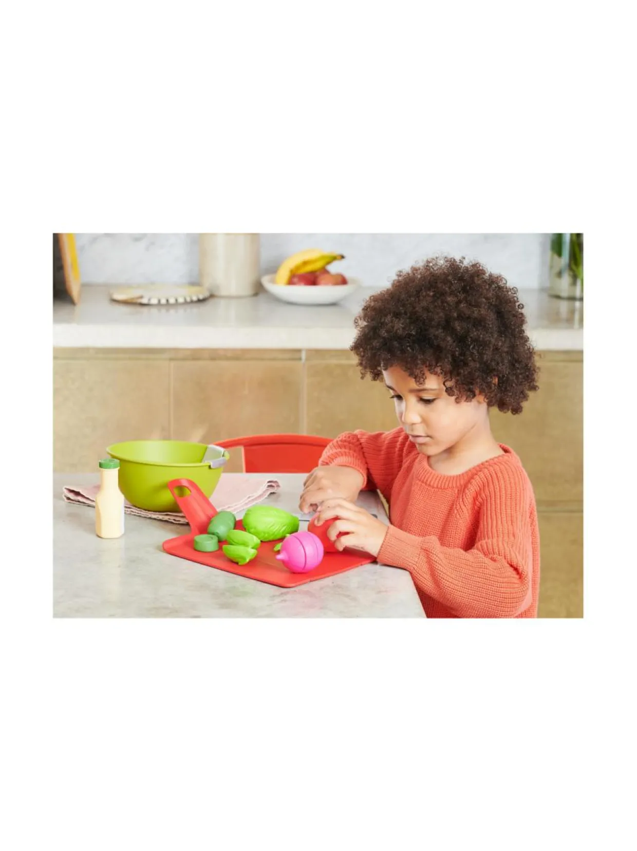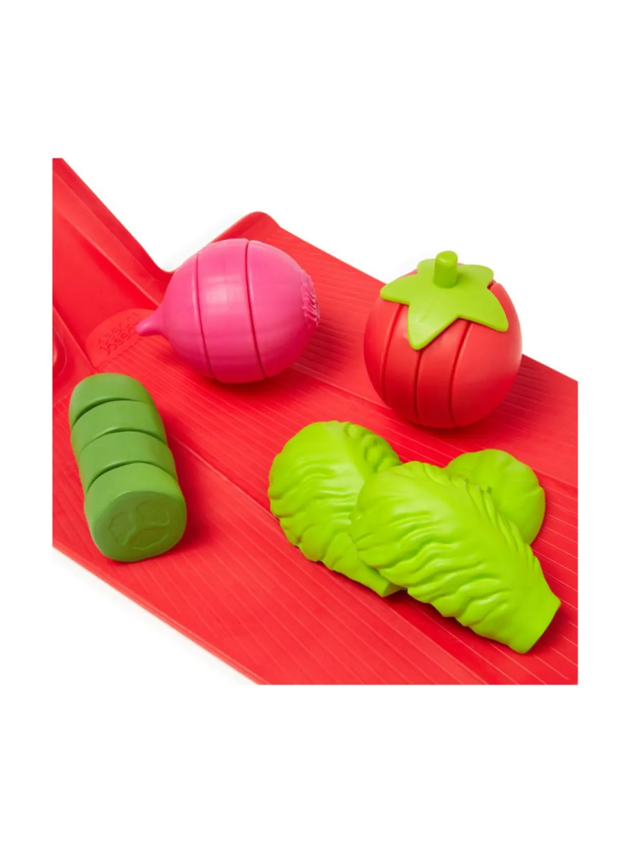 Chop2pot-leikkuulauta on juuri sopivan kokoinen kaikkien ainesosien leikkaamiseen, ja Elevate-veitsi tekee tomaattien, sipulien ja salaatin pilkkomisesta vaivatonta. Viipaloituaan ja kuutioituaan pikku kokki voi siirtää pilkotut ainekset vihreään Uno-salaattikulhoon ja lisätä sekaan salaattikastikkeen!