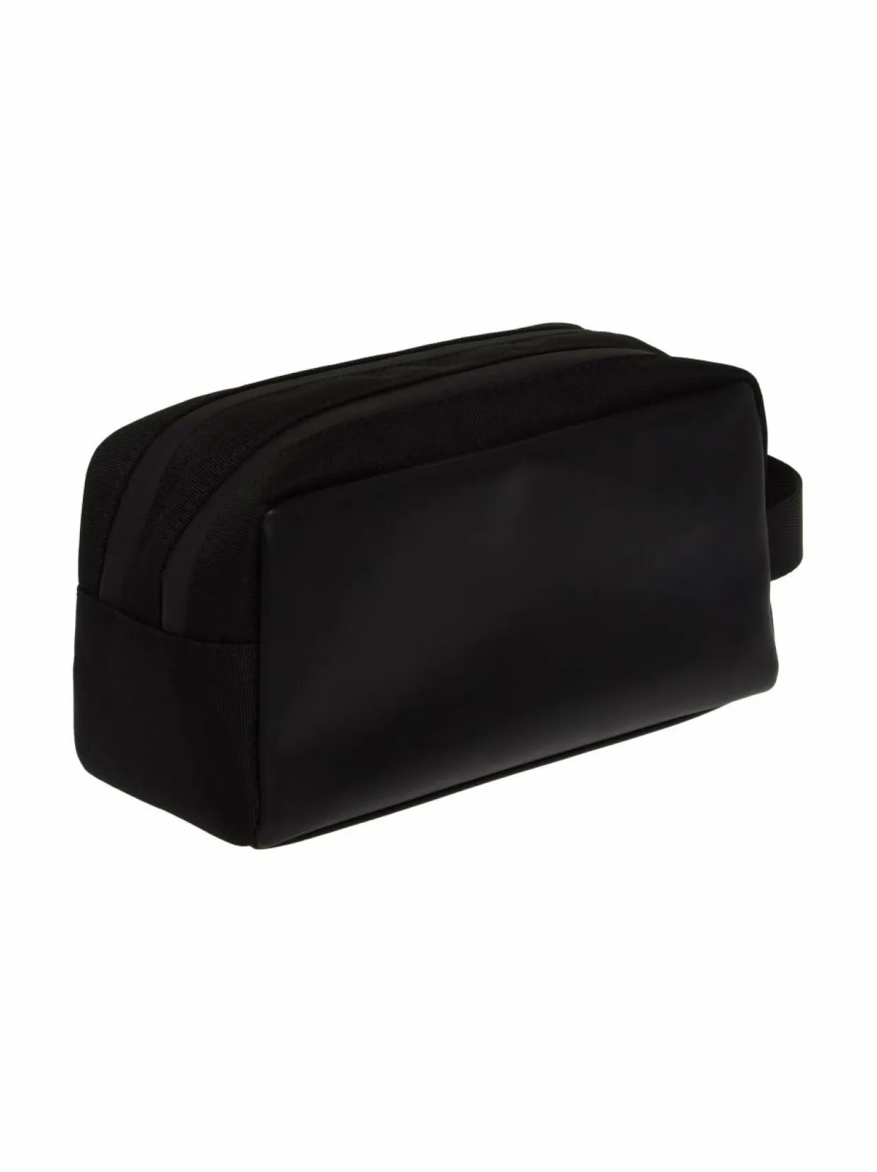Keinonahkaa ja tekstiiliä yhdistelevä CONSTRUE-toilettilaukku on hyvä ottaa vaikka matkalle mukaan. Laukku on jaettu kahteen vetoketjulla suljettavaa osioon, joista toisessa on vielä avotasku. Laukun voi ripustaa kätevästi naulakkoon roikkumaan.