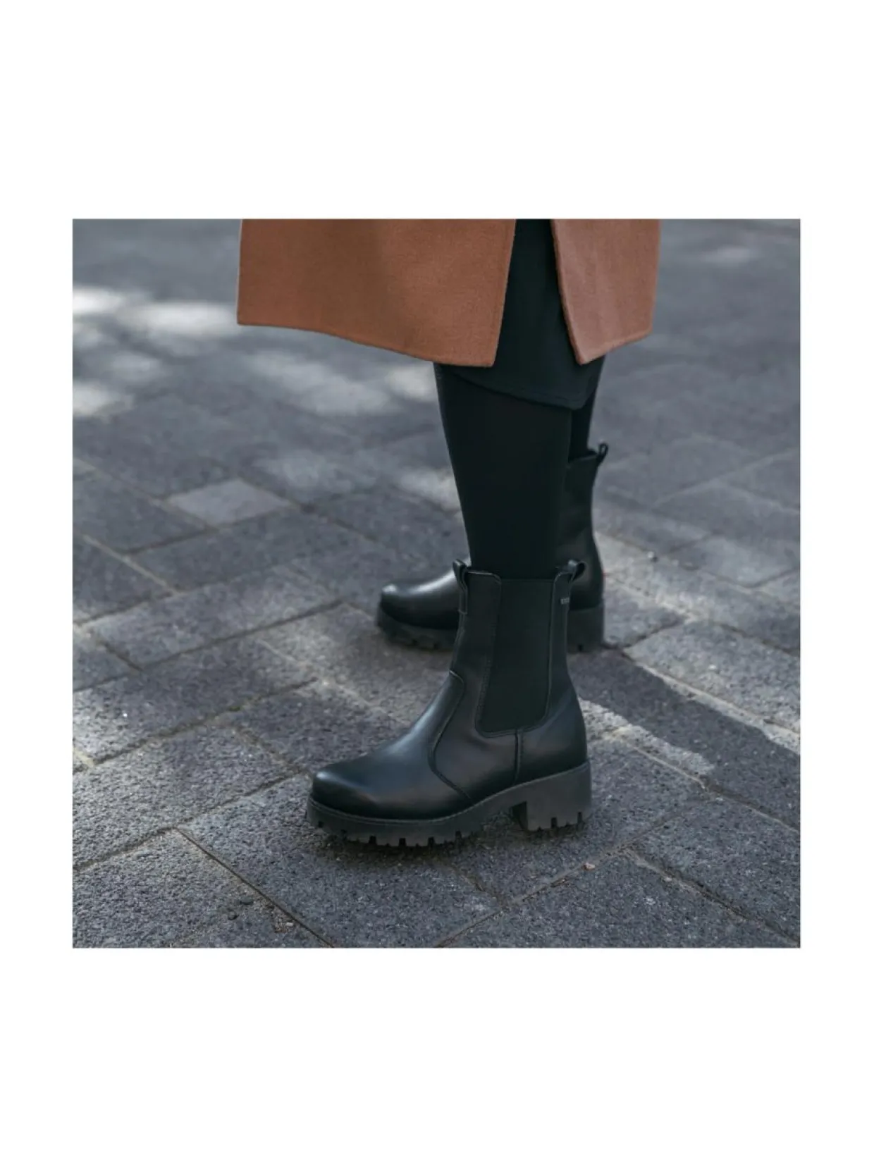Korkeavartiset KAARI Chelsea-nilkkurit modernilla korollisella pohjalla. Modernit kengät sopivat täydellisesti niin kaupunkiin kuin toimistollekin – tinkimättä mukavuudesta tai vedenpitävyydestä. Hengittävä GORE-TEX® pitää jalat kuivina sateessa ja loskassa. Sivulla leveä venyke, varressa vetoketju. Muhkea TR-kumipohja monenlaiseen syys- ja talvikeliin.