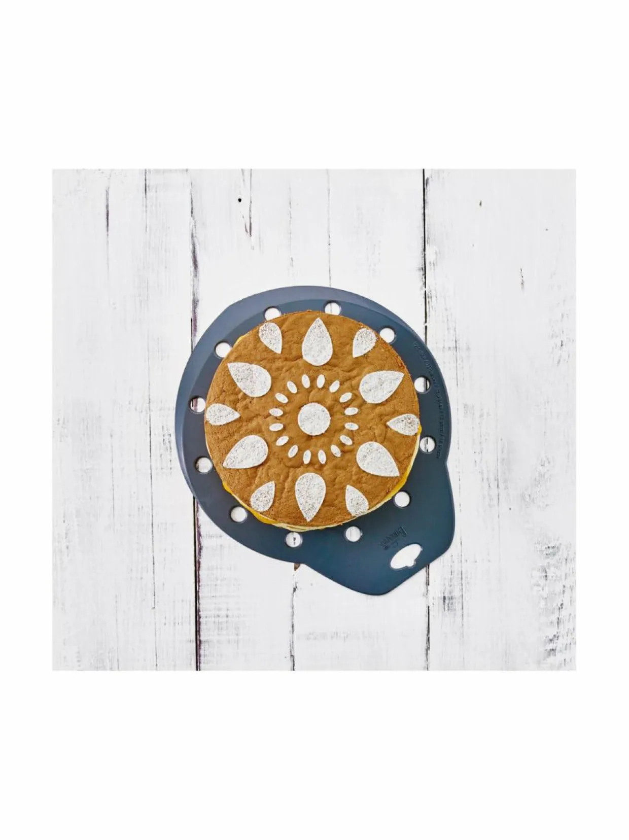 Monikäyttöinen kakkunostin sisältää tyylikkään sabluunakuvion, jonka avulla koristelet kakut ja muut leivonnaiset helposti. Auttaa myös jakamaan kakun tasaisesti 12 tai 16 osaan. Muovista valmistetun kakkunostimen halkaisija on 28 cm.
