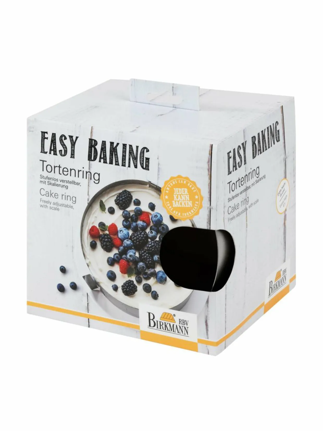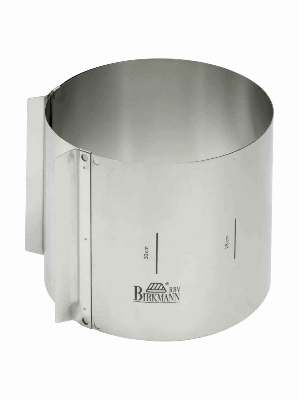 Säädettävän kakkurenkaan avulla kakkujen leipominen ja koristelu on helppoa. Teräksisen renkaan korkeus on 15 cm ja säädettävä halkaisija 18-30 cm.