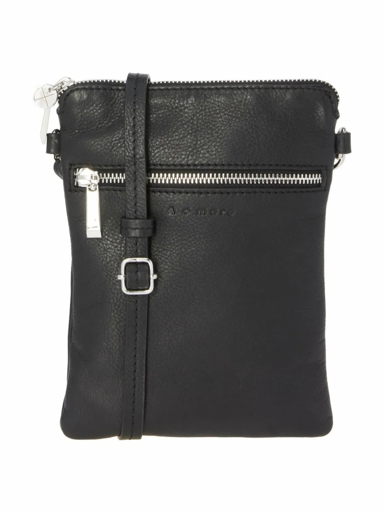 A+more Kamira -laukku on kapeanmallinen arkilaukku tärkeimmille tavaroille. Se on valmistettu osittain kasviparkitusta nahasta. Se suljetaan metallivetoketjulla ja sen olkahihnaa voi säätää metallisoljella. Edessä on pieni, painettu logo.