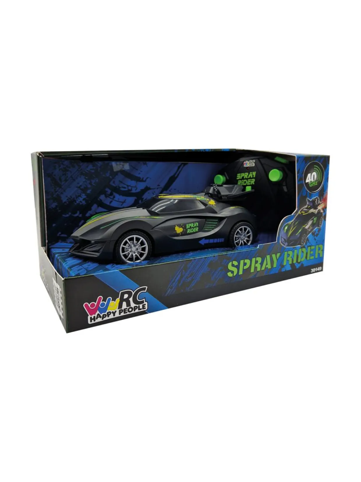 Happy Peoplen kauko-ohjattavassa Spray Rider -autossa on toimivat valot ja sumuefekti. Noin 19 cm:n kokoinen Spray Rider toimii 5 x AA/LR6-paristolla (3 ajoneuvoon ja 2 kauko-ohjaimeen, eivät sisälly toimitukseen). Kauko-ohjain toimii 40 MHz:n taajuudella. Tuote soveltuu 6-vuotiaille ja sitä vanhemmille lapsille. Kauko-ohjattava Spray Rider tarjoaa lapsellesi tuntikausia hauskaa ja vauhdikasta tekemistä!