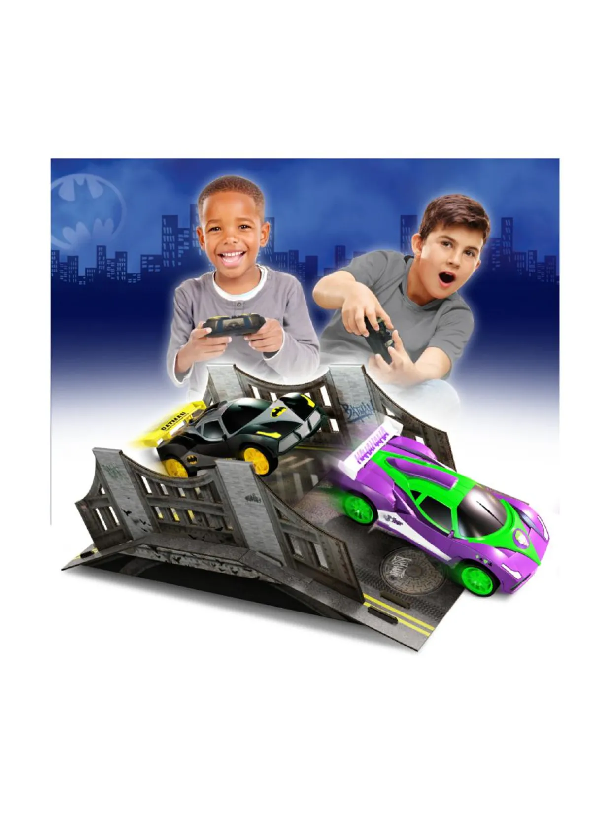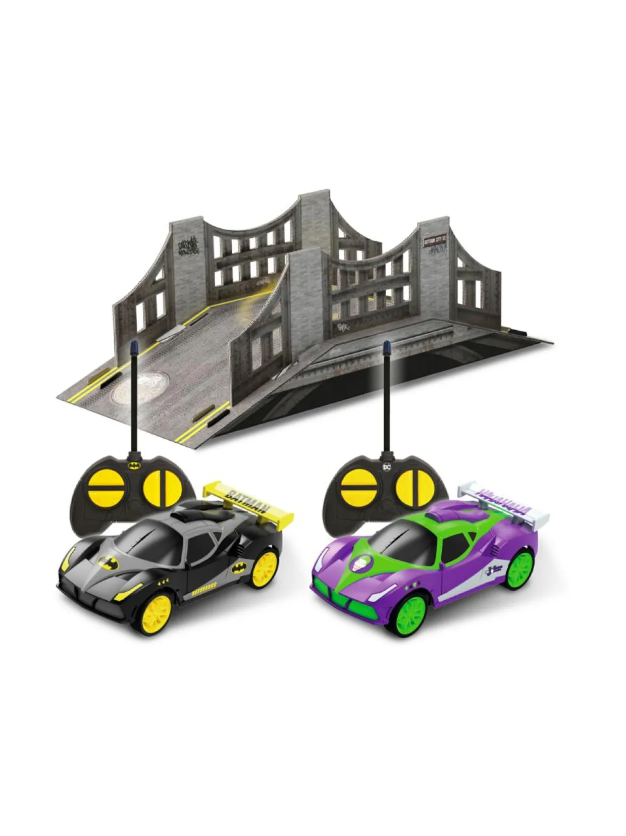 Mahtavassa kauko-ohjattavien autojen Batman vs. Jokeri -setissä on kaksi 1:28 mittakaavan autoa, joita voi ohjata kaikkiin suuntiin. Autoissa on aidot kumirenkaat ja helppokäyttöiset kauko-ohjaimet! Osallistu Batmanin ja Jokerin taisteluun ja aja kilpaa Gotham Cityn pimeillä kaduilla, sillä pakkaukseen kuuluu myös yksi Gotham Cityn silloista!