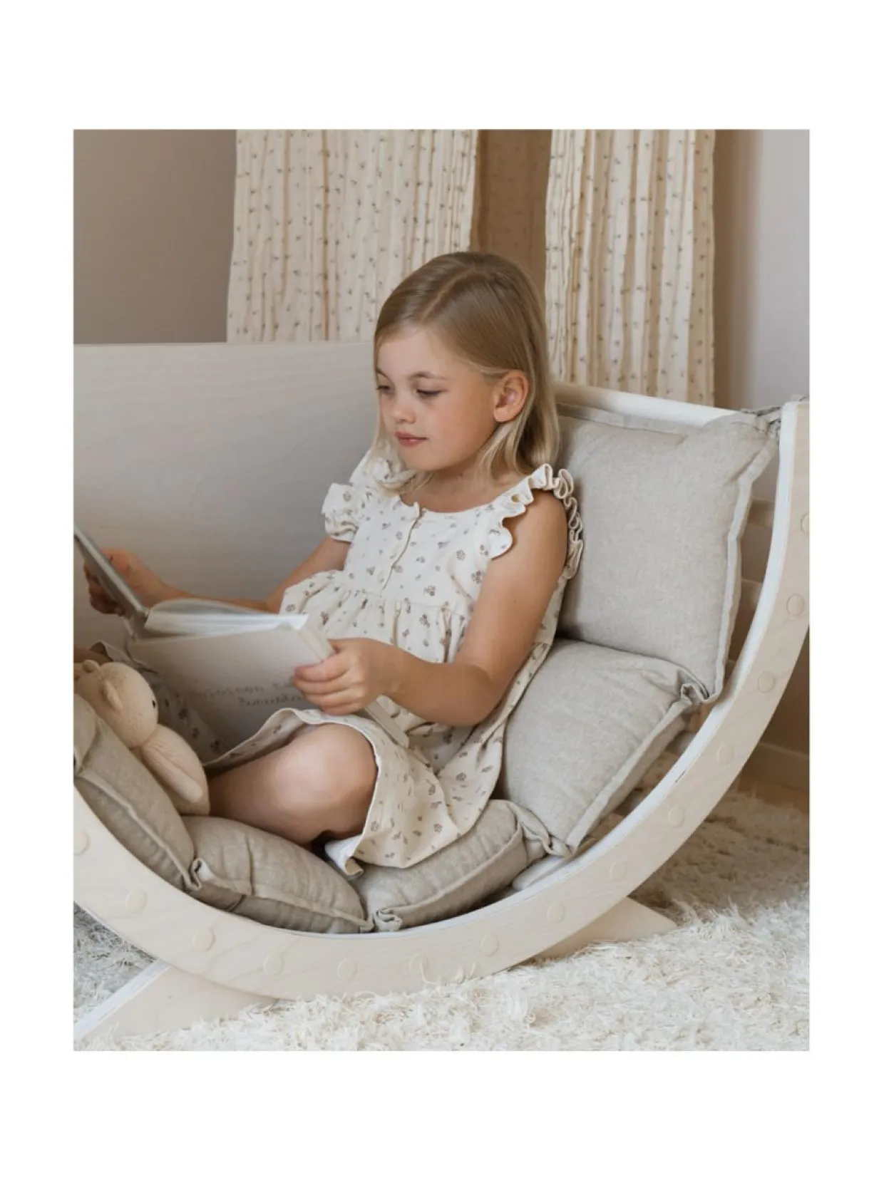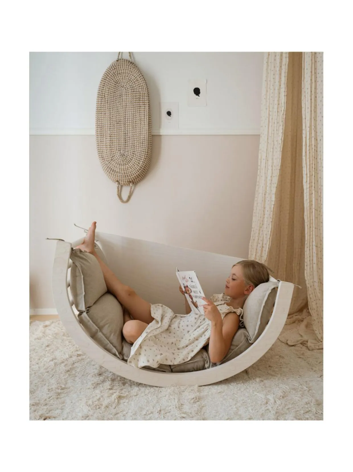 Tuotenumero1534036 MateriaaliKangas: 87 % puuvilla (kierrätetty), 13 % polyesteri (kierrätetty) | Täyte: 60 % polyesteri (kierrätetty), 40 % vaahtomuovirouhe (saattaa sisältää yksittäisiä untuvia Hoito-ohjeetHienopesu Pesulämpötila40 °C Takuu24 kk VäriHIEKKA Koko150 x 55 x 13,5 cm Avainsanatpehmuste, kiipeilykaari, kiikki, luoto, kotimainen, lasten pehmuste