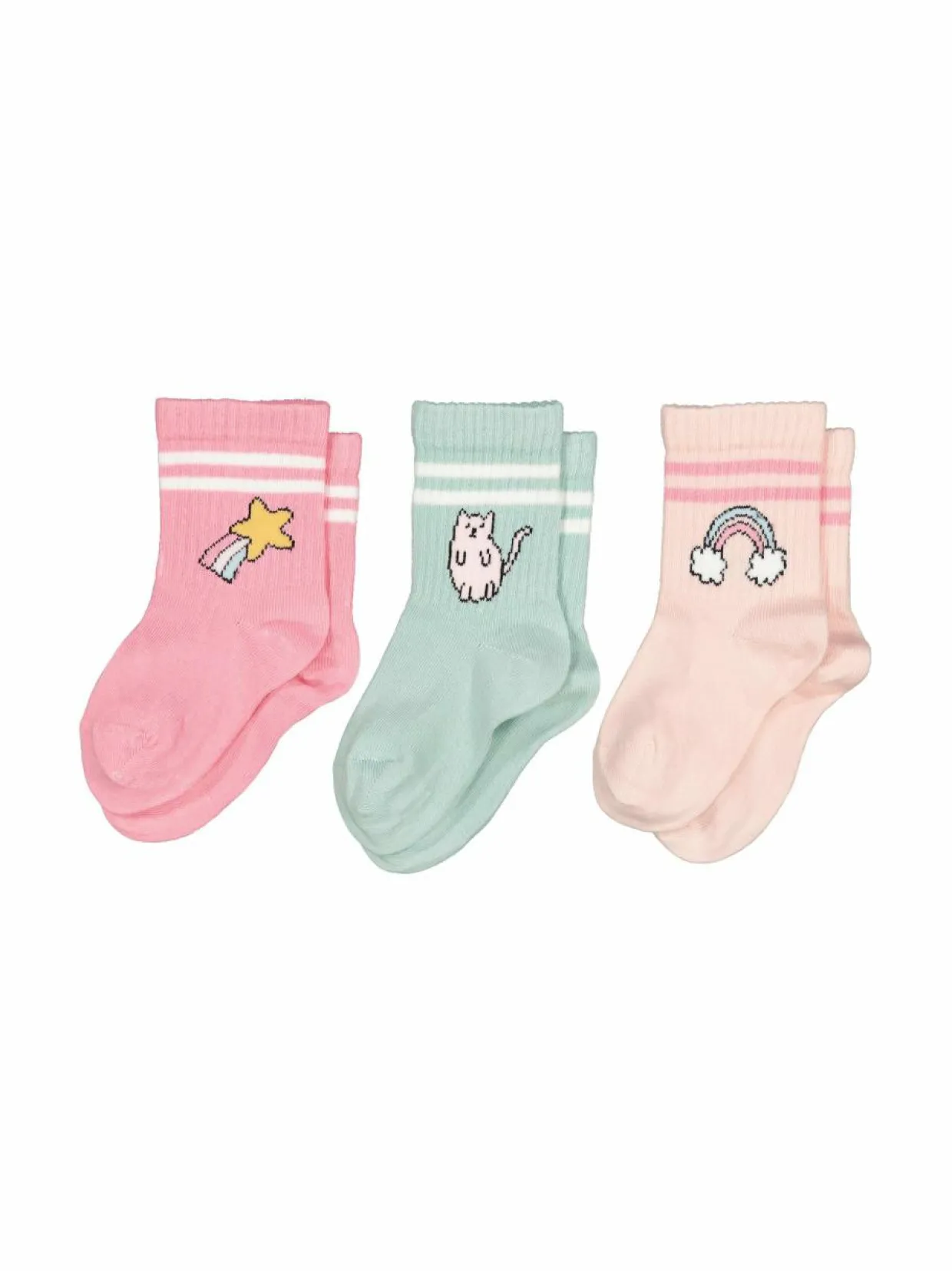 Lindexin suloiset Kawaii-sukat ovat pastellisävyiset ja pehmeän mukavat sukat ribatulla, joustavalla rakenteella. Tyylin viimeistee leikkisät kuviot varressa. Pakkaus sisältää 3 paria sukkia.