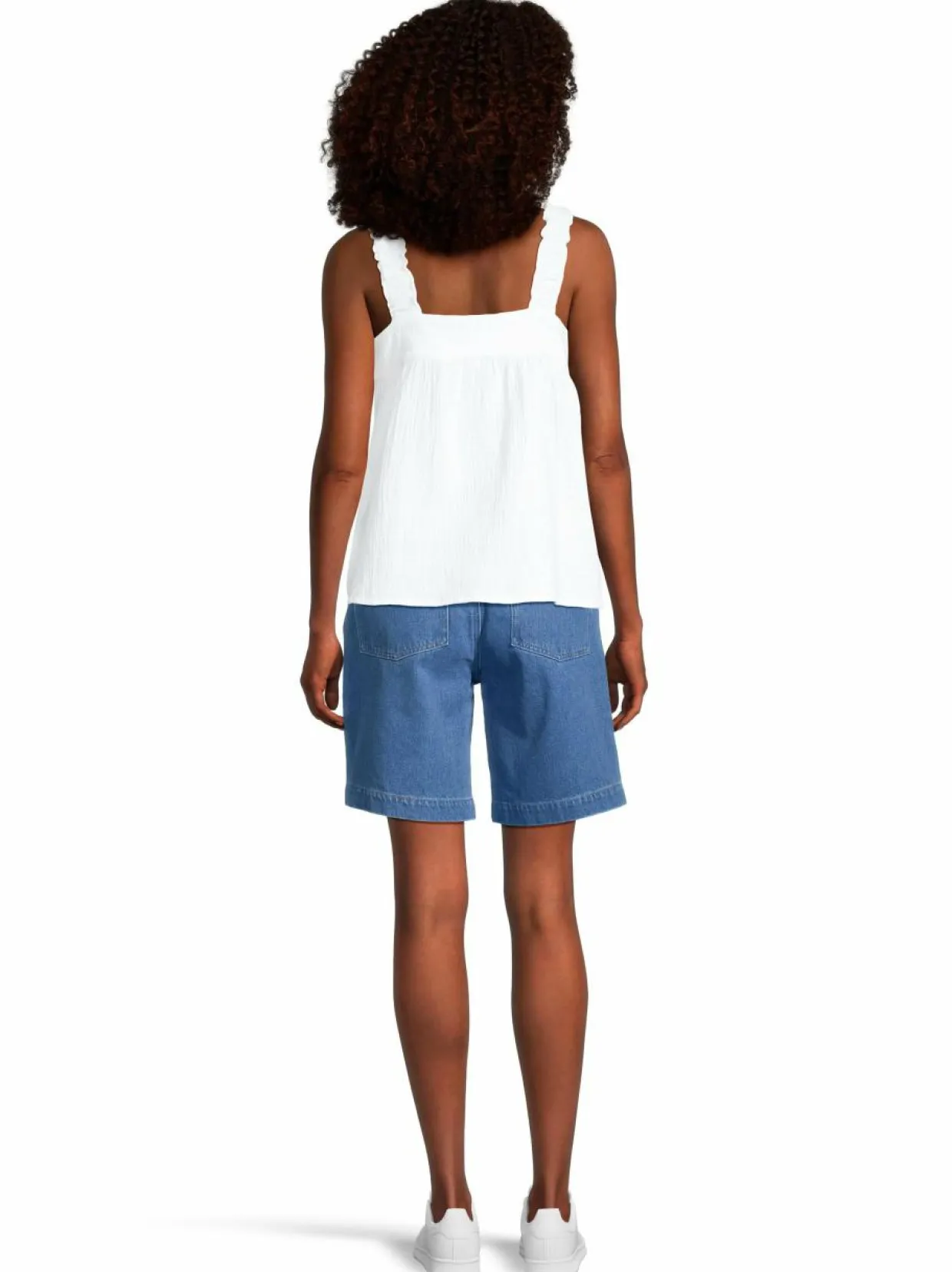 Kevyt ja mukava toppi, jossa on leveät olkaimet ja rennon mukava istuvuus. Topin materiaali on pehmeää ja hengittävää puuvillaa, joka on ihanteellinen valinta lämpimiin päiviin ja -iltoihin. Toppi sopii hyvin myös juhlavampaan tilaisuuteen yhdessä tyyliin sopivien asusteiden kanssa.Puuvilla on luonnollinen materiaali, joka on pehmeä ja hengittävä sekä lisäksi, se on myös kestävä ja helppohoitoinen.