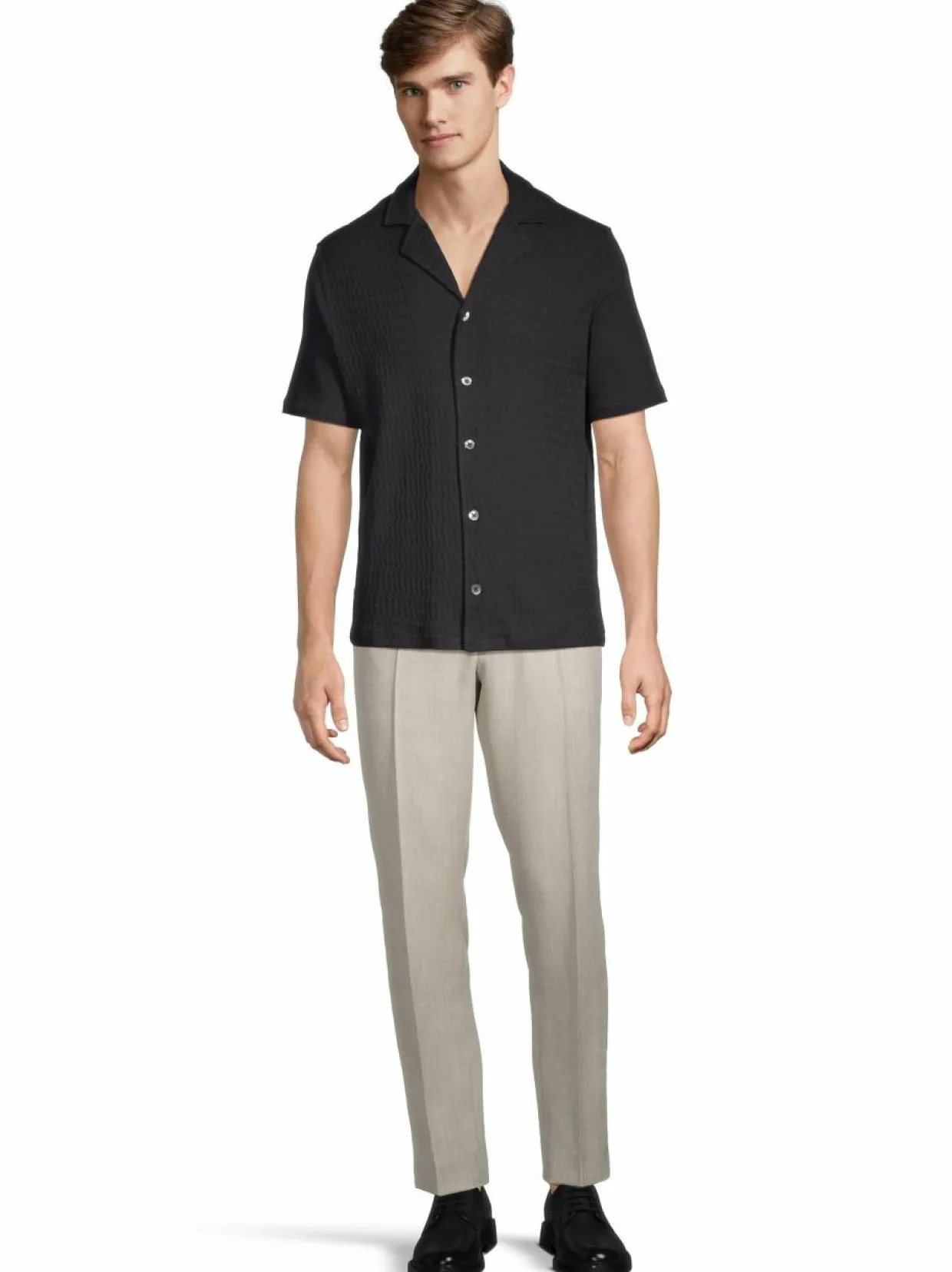 Oscar Jacobsonin Kirk-neulepaita on valmistettu 100 % puuvillasta. Se on lyhythihainen ja siinä on paitakaulus. Neulepaita on mukava ja hengittävä ja se sopii täydellisesti arkikäyttöön. Sitä koristaa edessä struktuuri. Neulepaidassa on myös napit edessä.