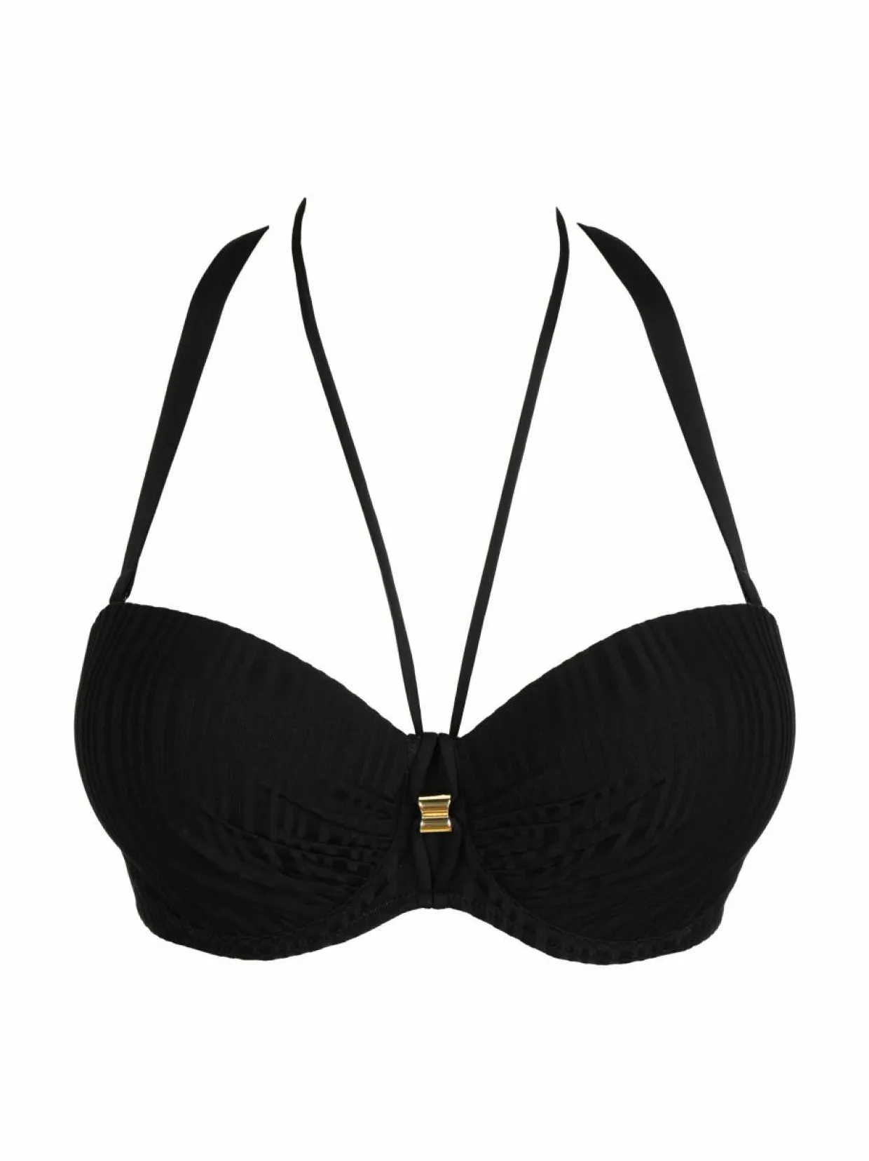 Primadonnan minimalistinen ja ajaton bikiniyläosa. Tässä kaarituellisessa bikininyläosassa on topatut kupit, jotka tarjoavat erinomaisen tuen myös ilman olkaimia. Bikinintoppi korostaa kehon parhaita puolia ja tarjoaa imartelevan leikkauksen. Sitä voidaan käyttää säädettävillä olkaimilla tai kokonaan ilman, mukana tulee myös koristenauha. Hihnat ja koristeellinen nauha kaulan ympärillä voidaan irrottaa. Valmistettu kevyestä ja joustavasta ribbikankaasta.