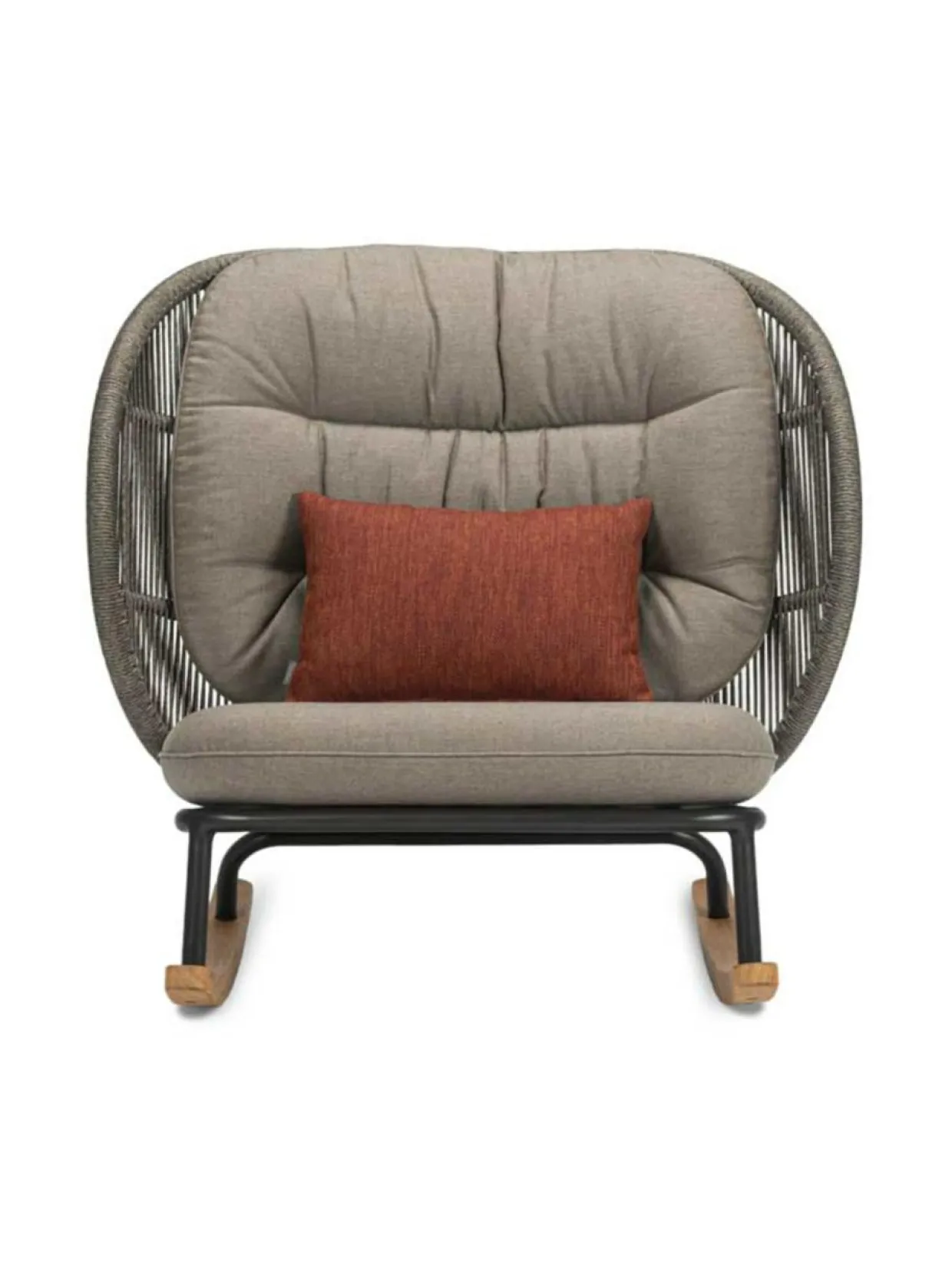 Tunne olosi mukavaksi Kodo-keinutuolissa ja uppoudu syviin mukaviin tyynyihin. Sen korkea polypropeeniköysi ja upea tiikkipohja yhdistävät nykyaikaisen muotoilun mukavuuteen liikkua rauhoittavasti edestakaisin.