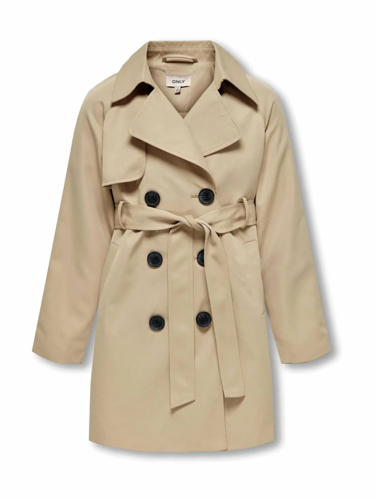 KIDS ONLY -merkin tyylikäs ja käytännöllinen KogChloe Life -trenssitakki on valmistettu 100 % kierrätetystä polyesteristä. Takki on vedenpitävä ja tuulenpitävä, joten se sopii täydellisesti välikauteen ja talveen. Takissa on leveä lovikaulus ja edessä napitus. Takissa on myös kaksi sivutaskua.
