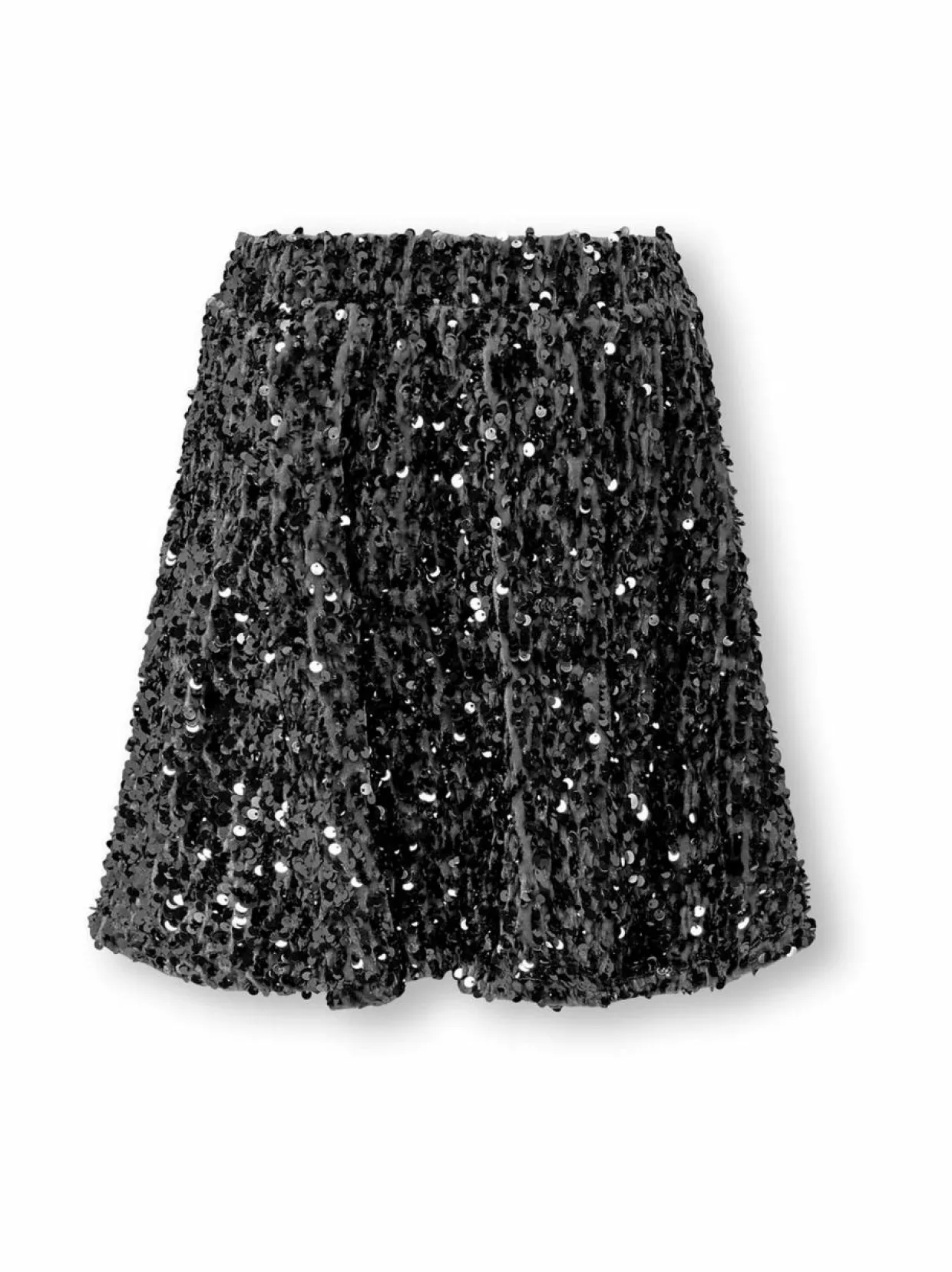 Paljeteilla koristeltu juhlava hame. Materiaaliin on lisätty mukavasti joustoa. Myös vyötärölinja on joustava. Suunniteltu normaalilla A-linjaisella istuvuudella.