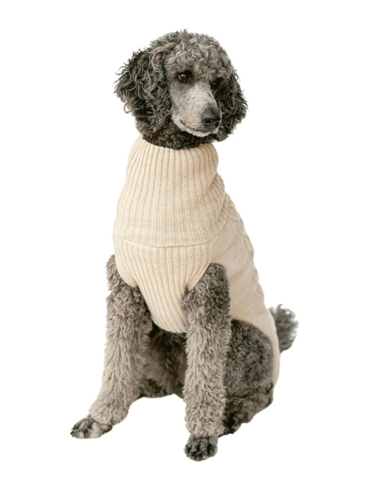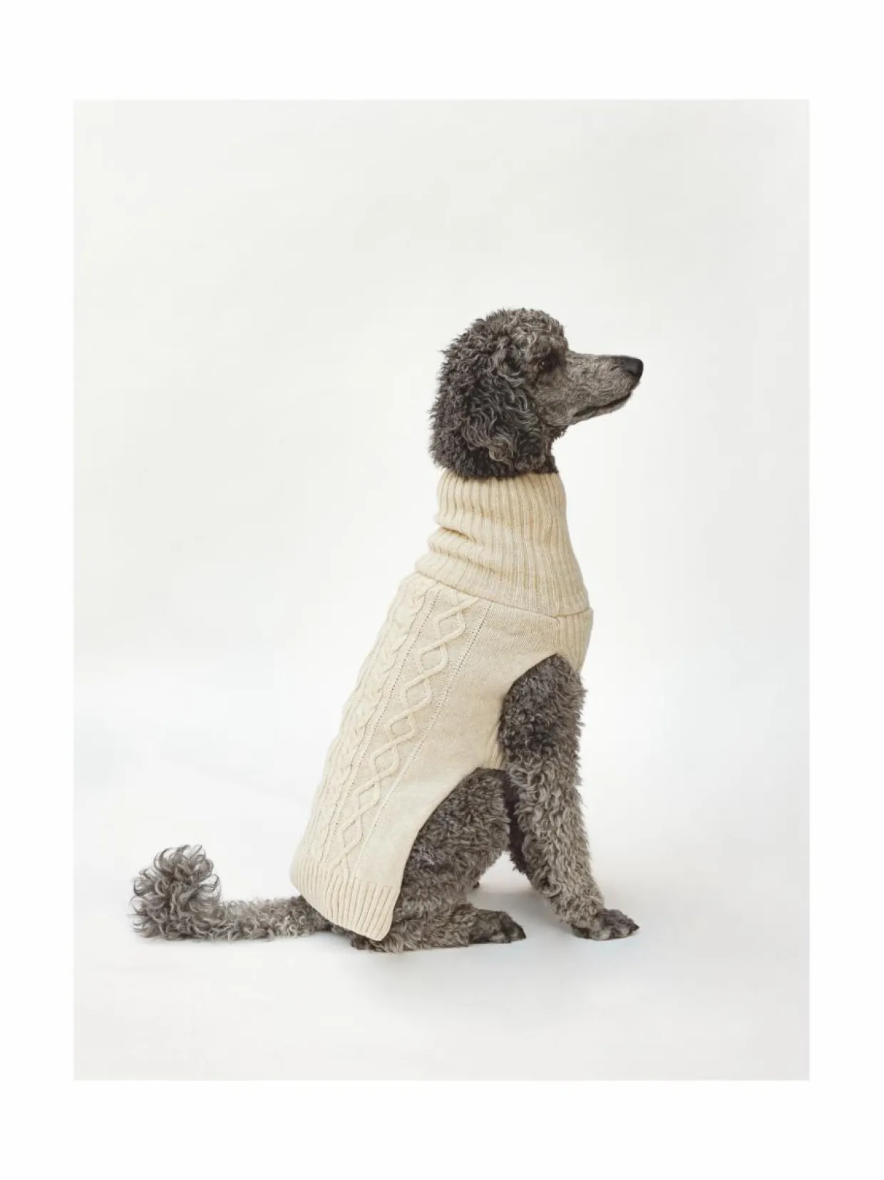 Koiran neule, palmikko, vaalea beige