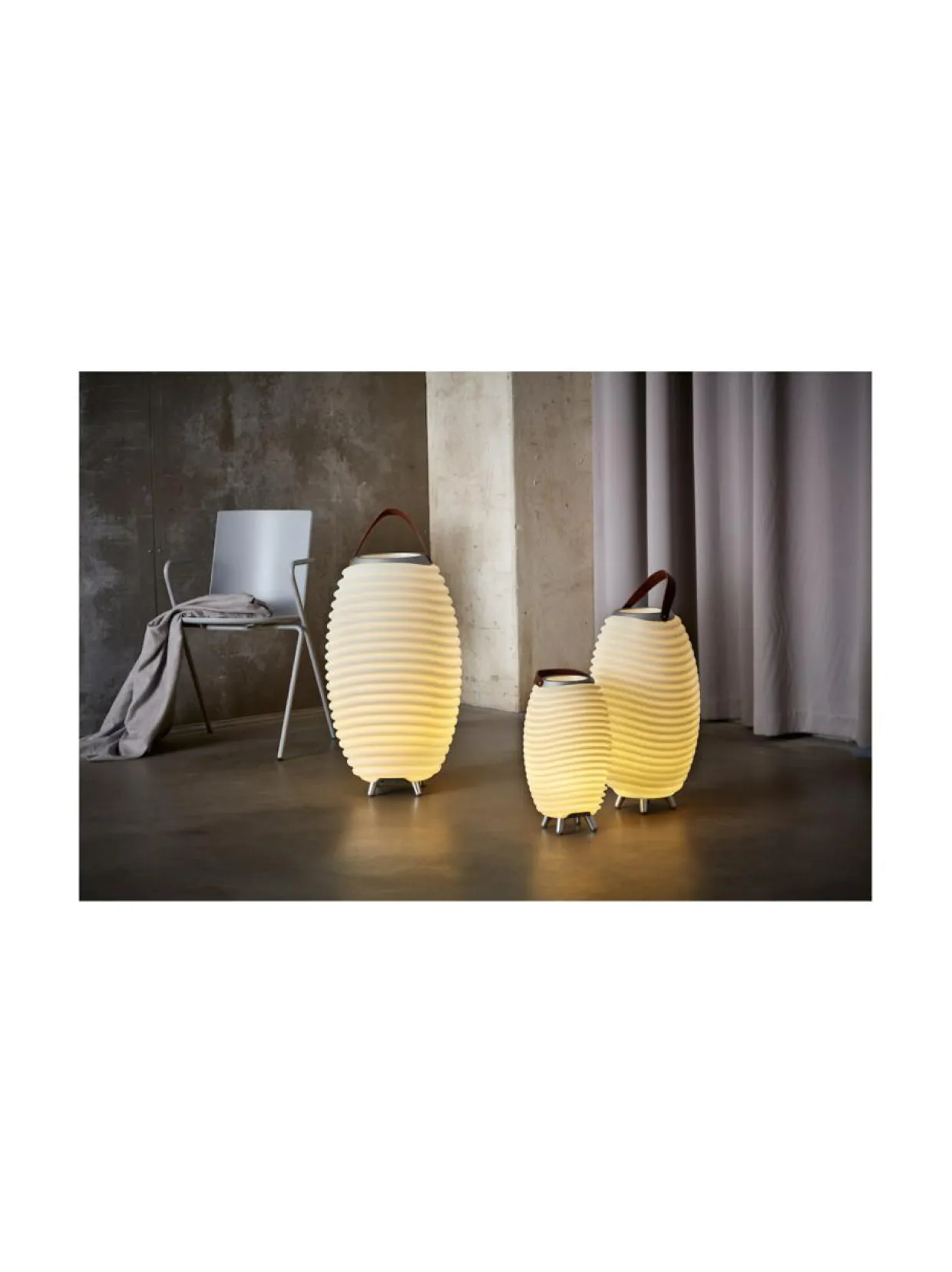 Tanskassa suunniteltu ja Euroopassa valmistettu Kooduu Synergy (2.0) malliston led-valaisimissa on täysin integroitu langaton kaiutin ja kaukalo esim. juomia tai kukkia varten.
