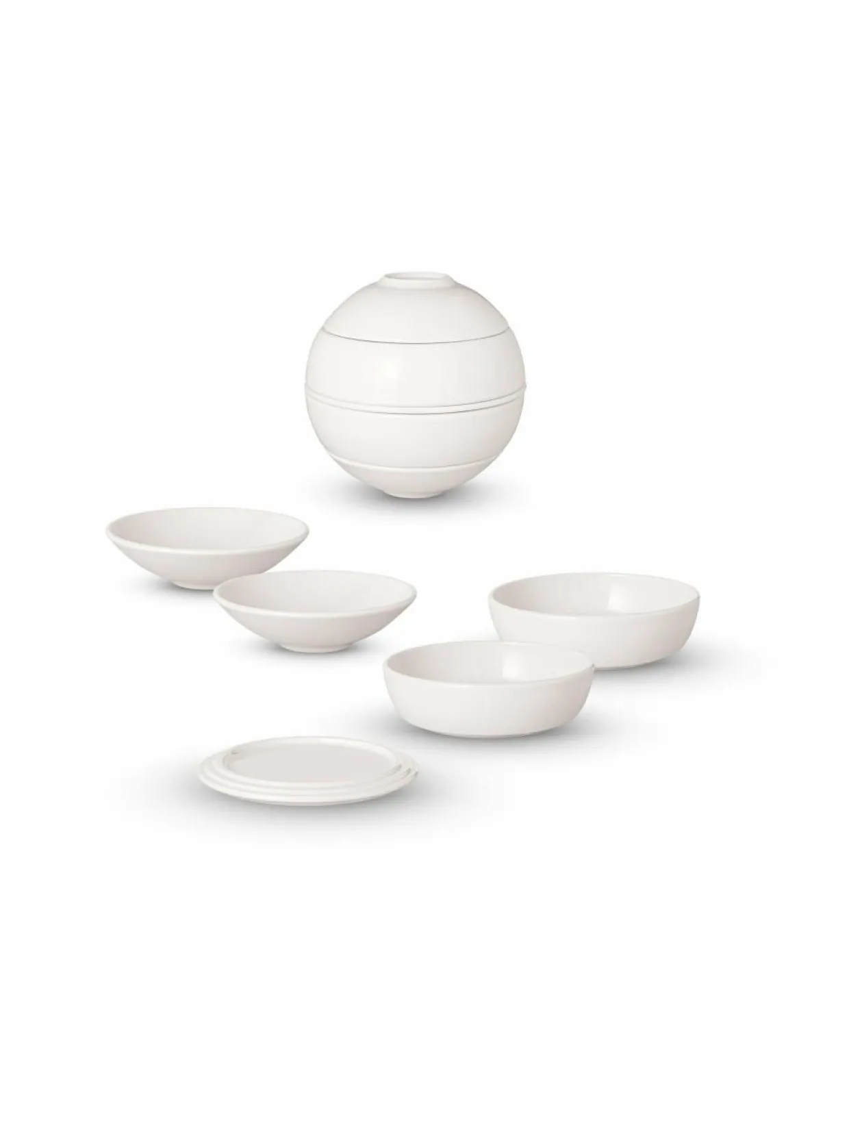 La Petite Boule -tarjoilusetti on pienempi versio alkuperäisestä La Boule -astiasarjasta, jossa yhdistyy keraaminen osaaminen ja ikoninen muotoilu. Setissä on tilaa säästävä, pinottava muotoilu huomiota herättävällä ulkonäöllä. La Petite Boule on loistava muotoiluesine keräilijöille, mutta myös täydellinen valinta lahjatuotteena. Se koostuu viidestä eri osasta, mukaan lukien neljä kulhoa ja keskilautanen, joilta tarjoilet pientä purtavaa vieraillesi.