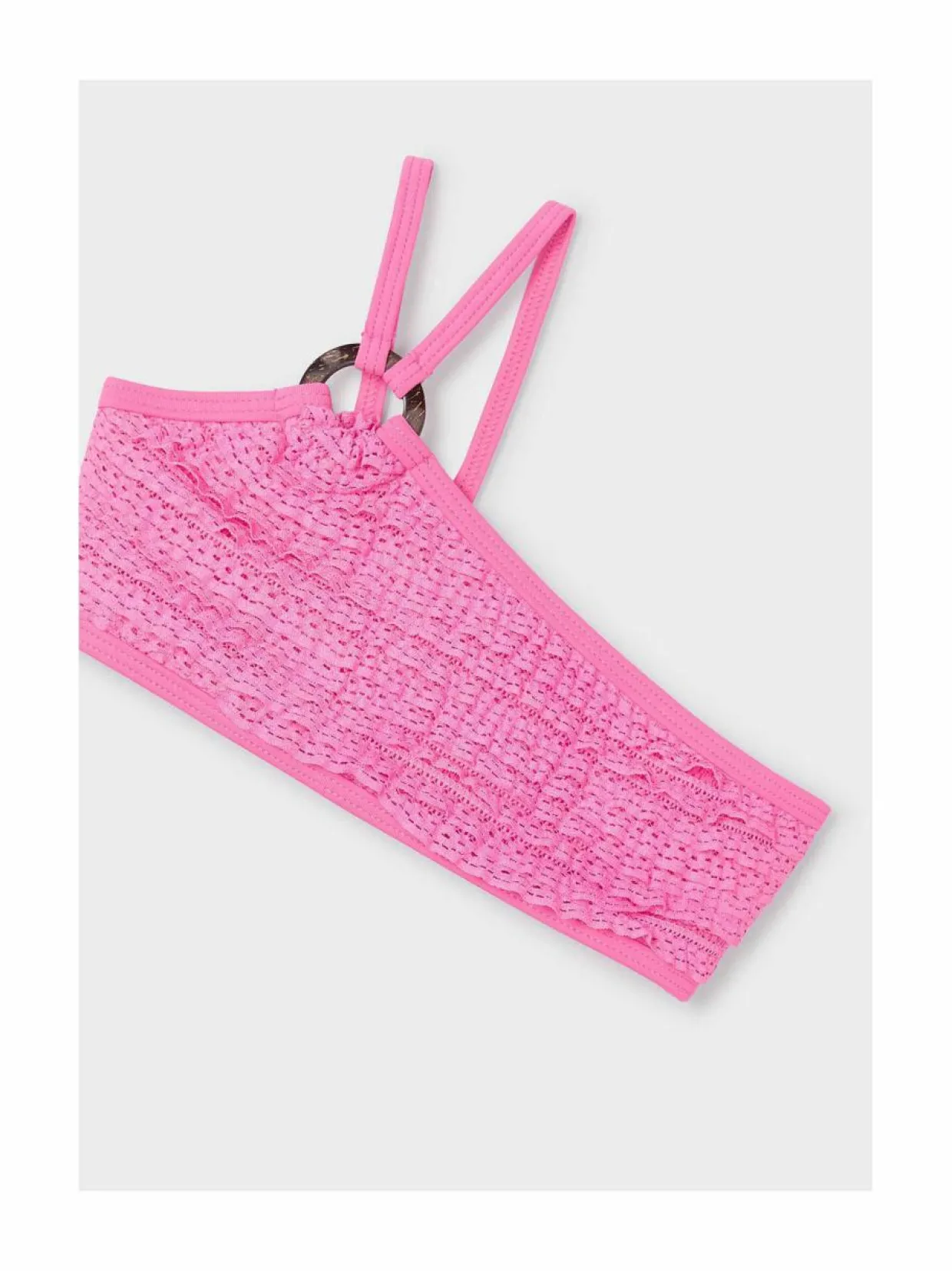 Mukava bikinisetti Mayoralilta, johon kuuluu yksiolkaiminen pitsikoristeltu bikiniyläosa ja klassinen bikinialaosa. Materiaali on joustava, pehmeä sekä nopeasti kuivuva.