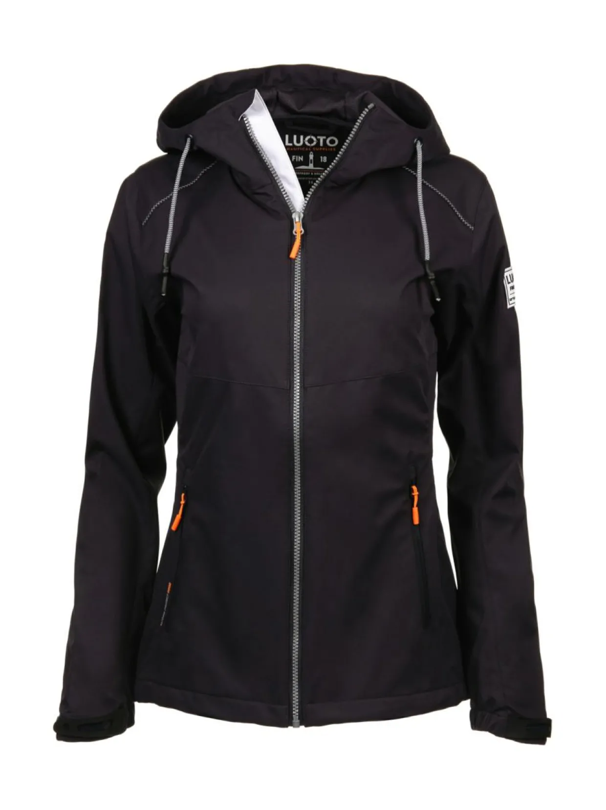 Luoto ’Laine’ on naisellinen, tyrskyt kestävä softshell takki. Takin materiaali on ihanan pehmeä ja miellyttävä päällä. Takin helmaa, huppua ja hihansuita voit säätää itsellesi sopiviksi. Pikkutavarat pysyvät mukana matkassa vetoketjullisissa taskuissa. Tekniset tiedot: Vesipilari: 5 000 mm, Hengittävyysarvo: 5 000 g/m²/24h. Vetoketjulliset taskut.
