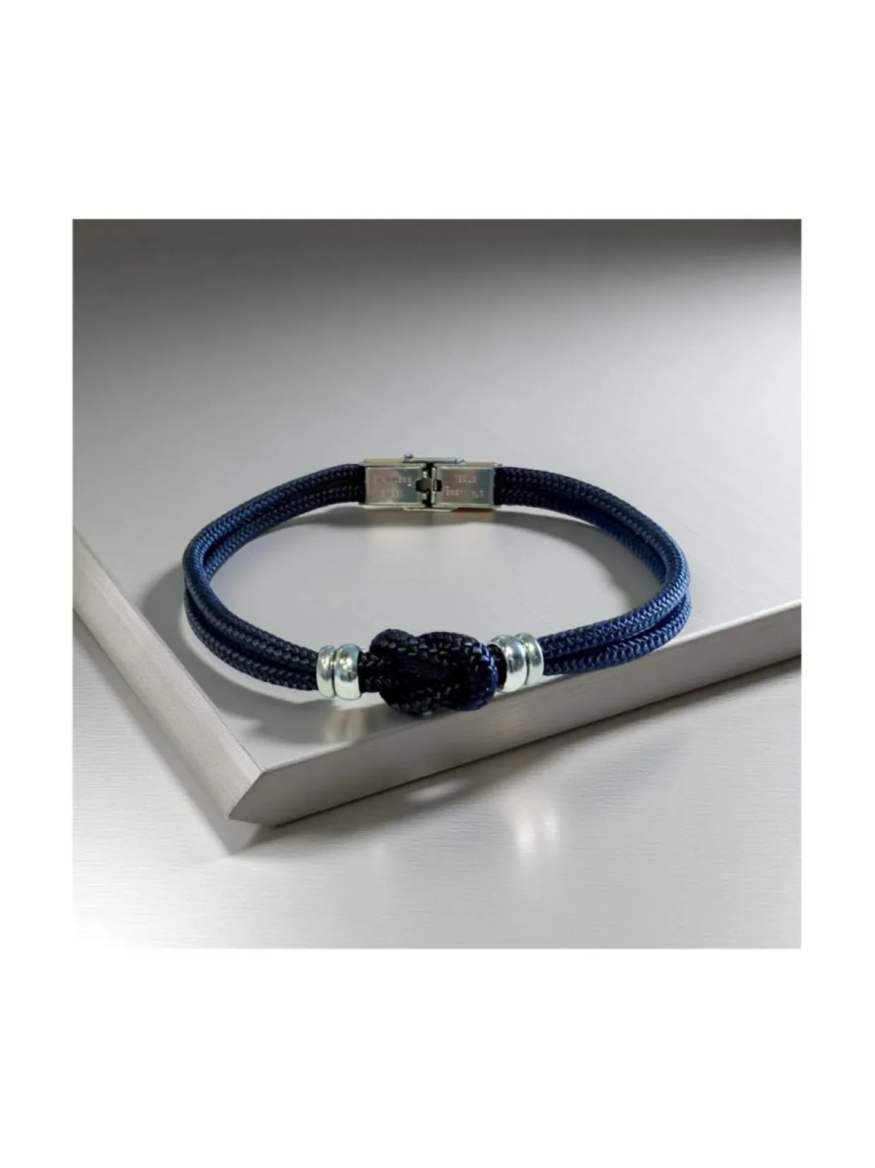 Tyylikäs laivastosininen rannekoru, jonka keskellä oleva solmu toimii katseenvangitsijana – ja kantaa mukanaan symbolista merkitystä. Solmu voi edustaa yhteyttä, sitoutumista, pysyvyyttä tai elämän solmukohtia, joista selviää – jokainen voi tulkita sen omalla tavallaan.