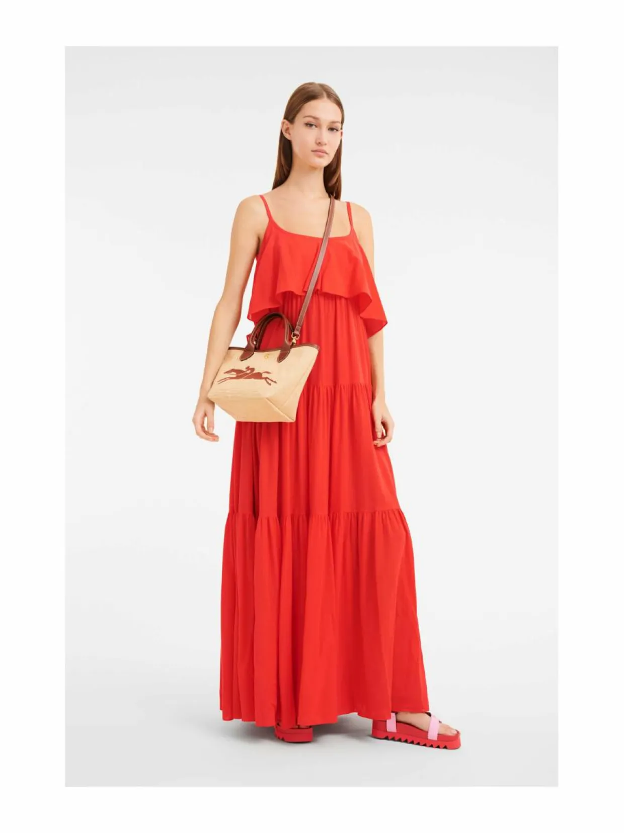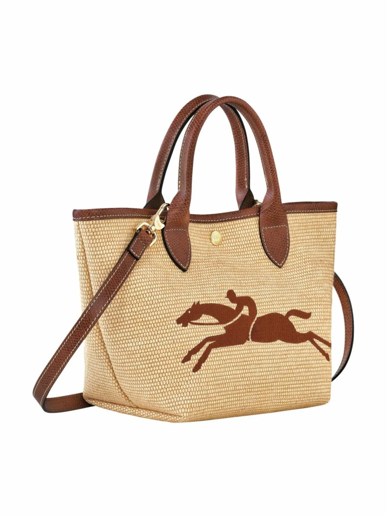 Tässä kauniissa ja korivaikutteisessa laukussa on näyttävä kirjailtu Longchamp-hevonen, joka lisää siihen leikkisän ja tyylikkään ilmeen. Eloisat kantokahvat ja säädettävä olkahihna tuovat tyylikästä kontrastia laukun olkimateriaalin luonnolliseen sävyyn. Olkahihnan ansiosta laukkua voi kantaa joko perinteisesti olkapäällä tai kädessä käsilaukkuna, tarpeesi mukaan.