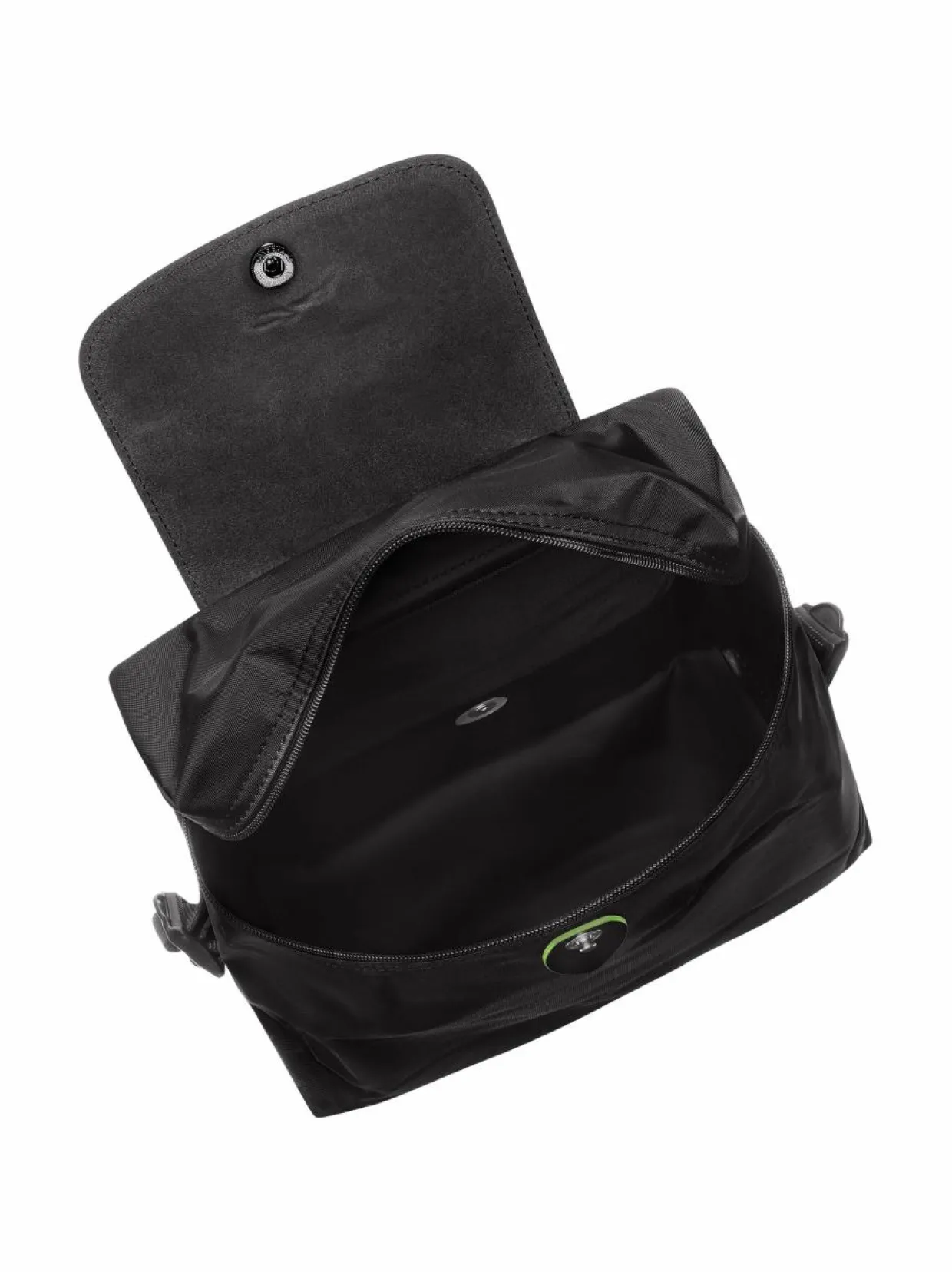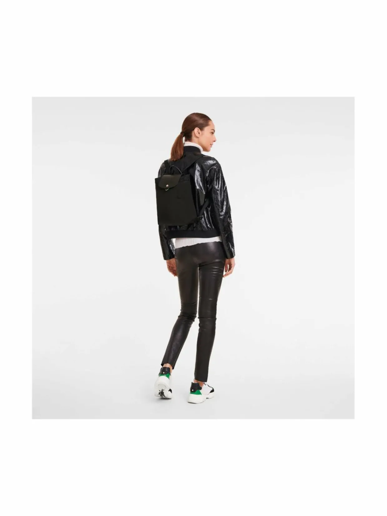 Le Pliage Green -malliston tuotteet ovat valmistettu kierrätetyistä materiaaleista, jotka on sisäpuolelta pinnoitettuja. Tämä kokoontaitettava reppu on kevyt ja se suljetaan sekä vetoketjulla että nahkaisella läpällä. Sisältä löytyy yksi avotasku. Ekologinen ja kestävä valinta päivittäiseen käyttöön.