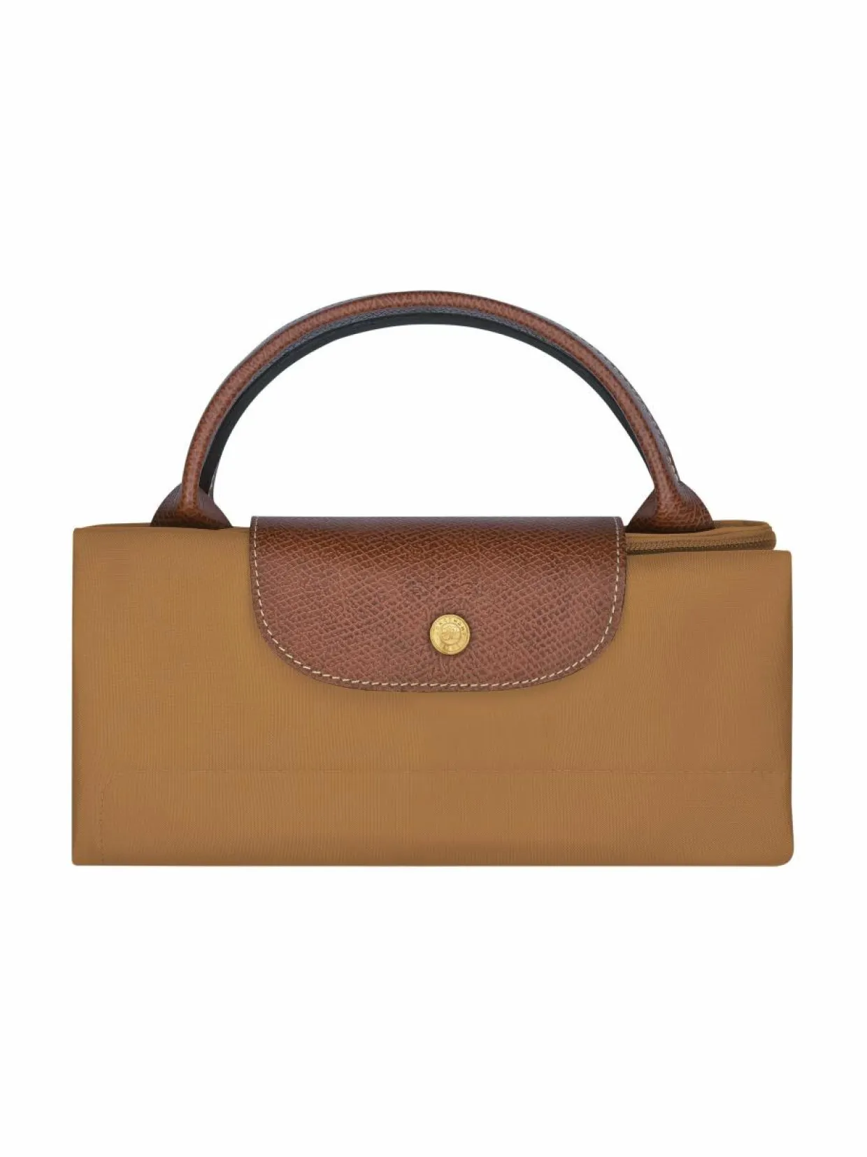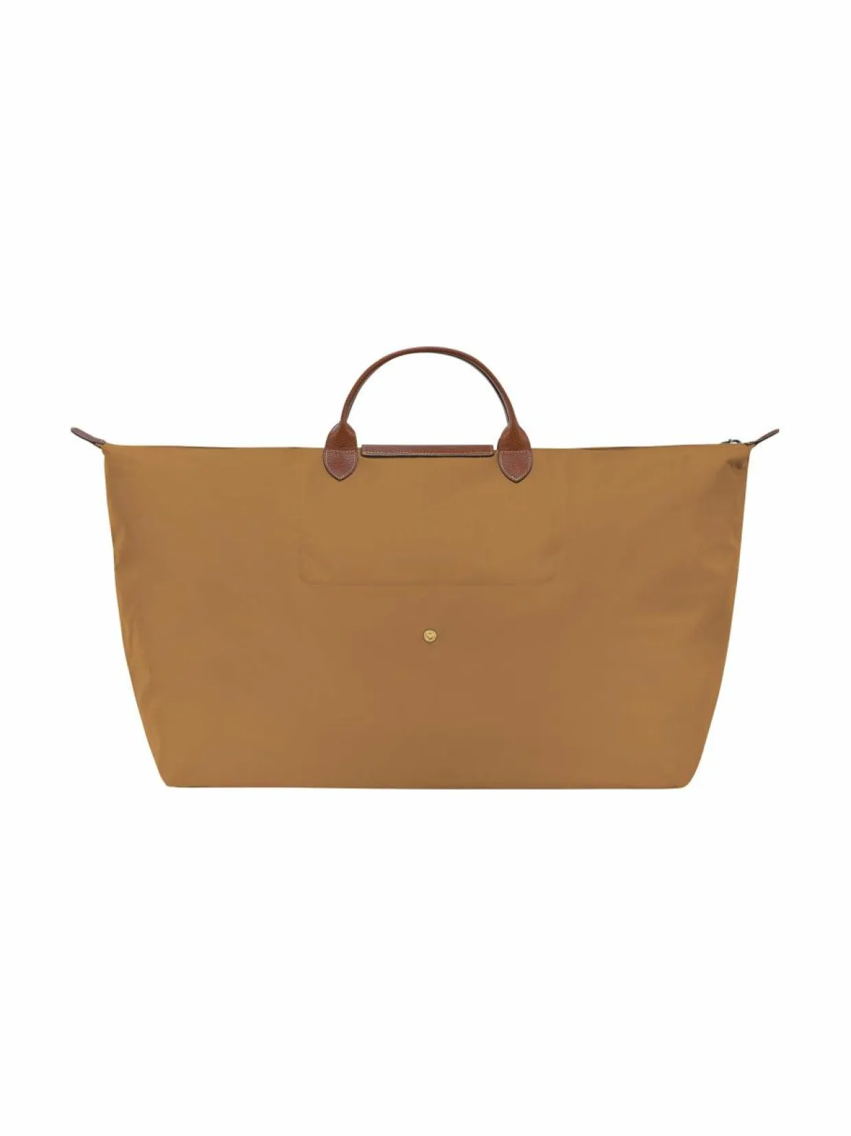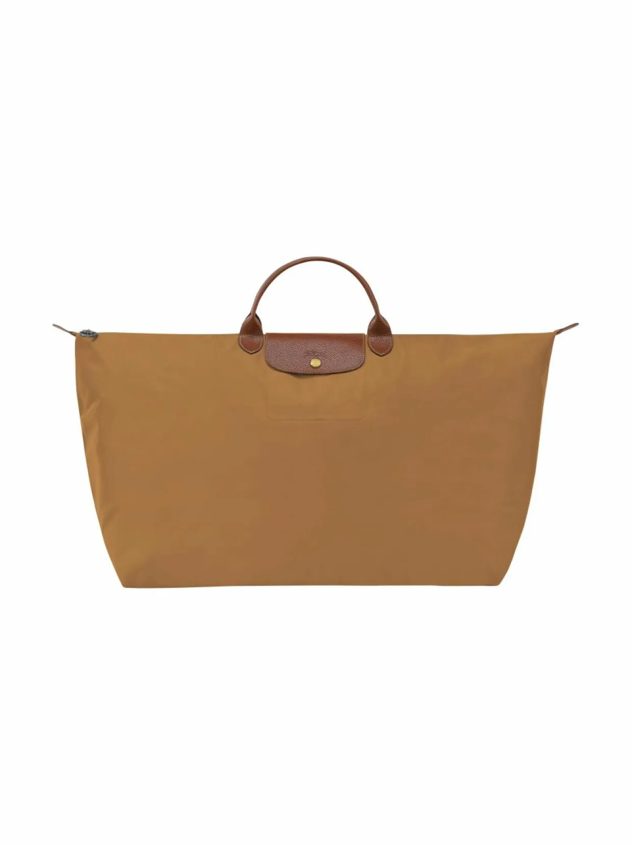 Longchampin ikonisen Le Pliage-sarjan kokoontaitettava matkakassi. Laukun päämateriaali on sisältä pinnoitettua polyamiditekstiiliä ja kantokahvat ja läppä aitoa nahkaa. Laukku on kevyt kantaa ja siinä on vetoketjukiinnitys ja sisältä löytyy avotasku.