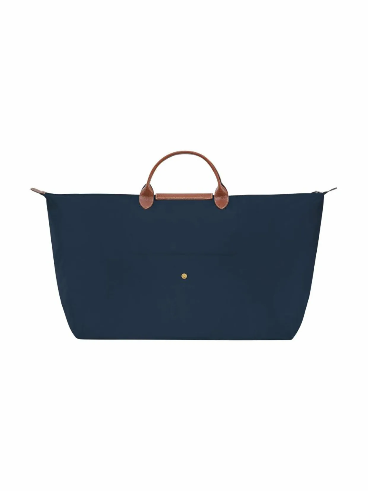 Longchampin ikonisen Le Pliage-sarjan kokoontaitettava matkakassi. Laukun päämateriaali on sisältä pinnoitettua polyamiditekstiiliä ja kantokahvat ja läppä aitoa nahkaa. Laukku on kevyt kantaa ja siinä on vetoketjukiinnitys ja sisältä löytyy avotasku.